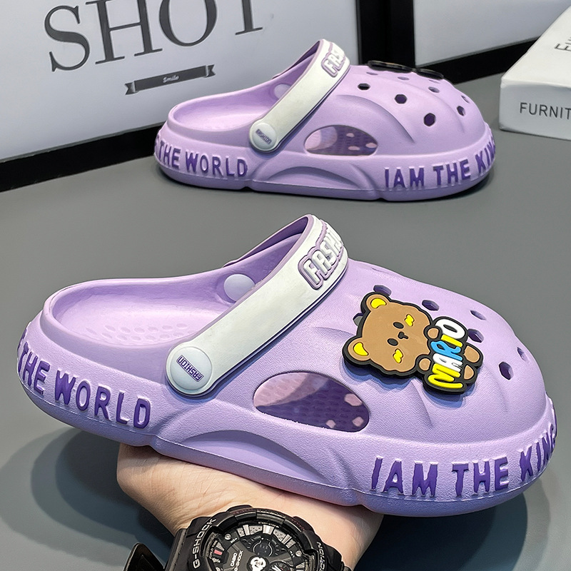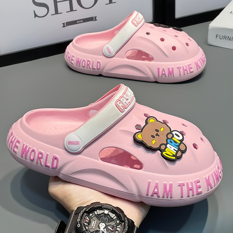夏季儿童洞洞鞋男中大童防滑软底小孩家居室内春秋沙滩凉拖鞋女童