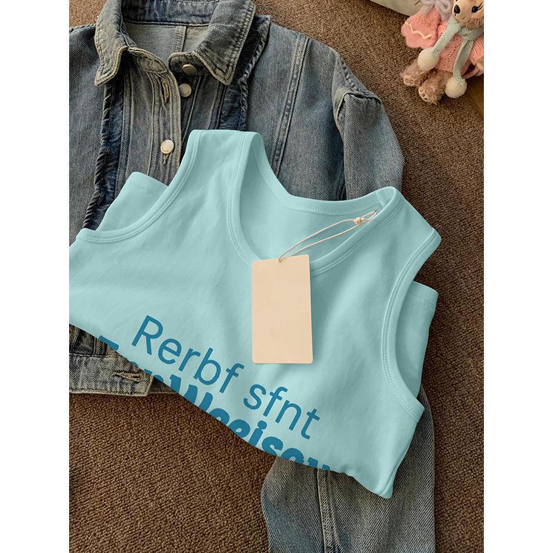 美式浅绿色工字无袖bm外穿吊带小背心女夏季新款修身短款上衣