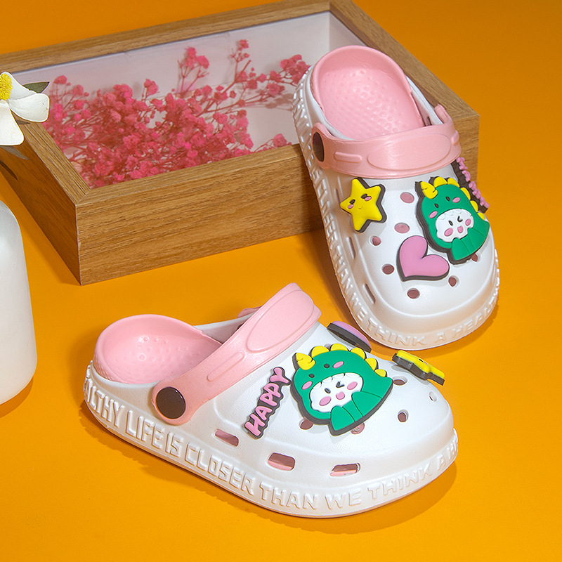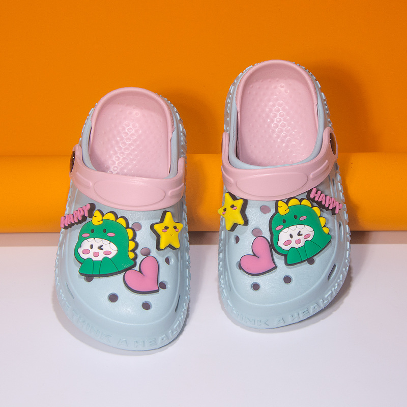 夏季可爱洞洞鞋儿童DIY配饰软底防滑EVA拖鞋外穿沙滩包头凉鞋女童