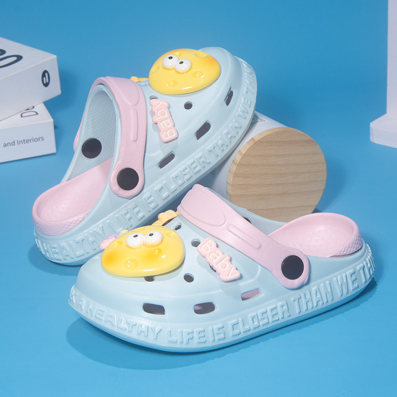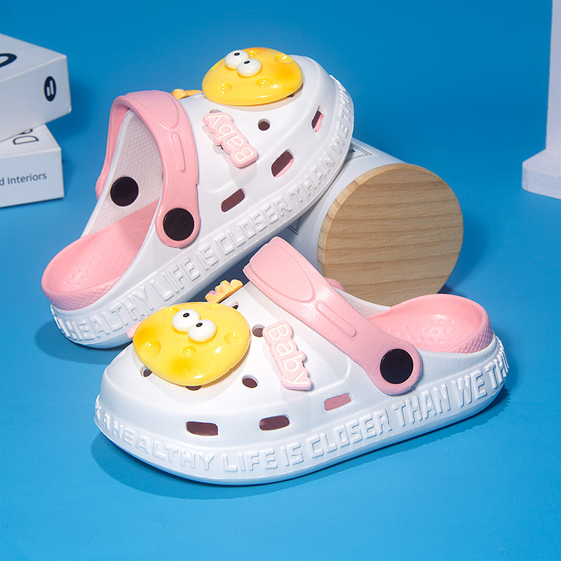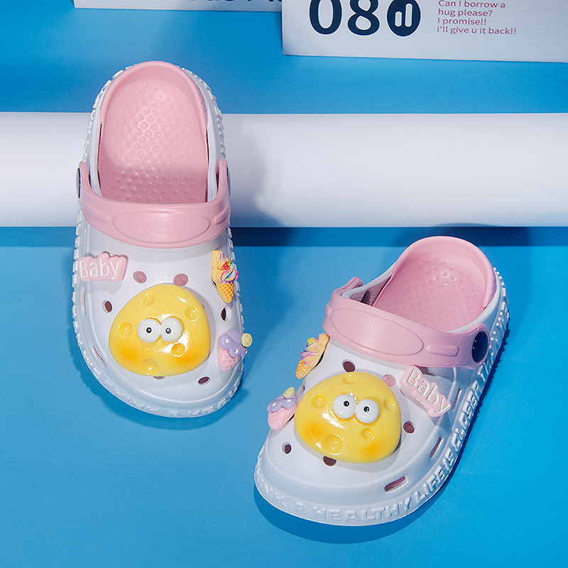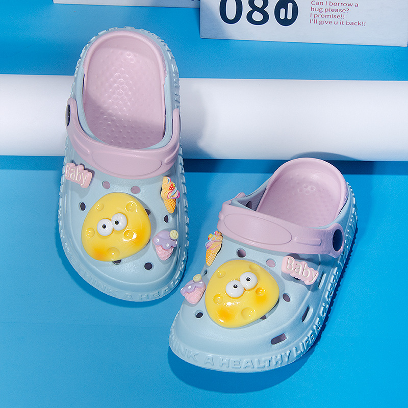 夏季新款可爱洞洞鞋女童防滑软底鞋花EVA凉鞋儿童外穿包头DIY拖鞋