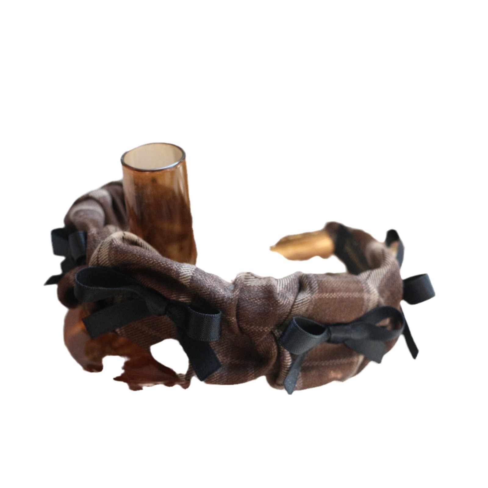 复古文艺风格纹发箍高颅顶洗脸头箍压发神器蝴蝶结配饰女百搭