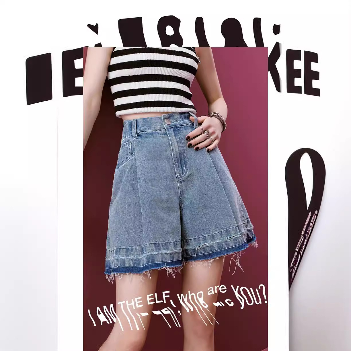 高腰a字牛仔短裤女夏季新款宽松阔腿显瘦小个子潮