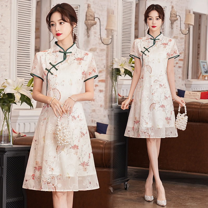 夏季新款裙子时尚气质日常改良中式旗袍刺绣显瘦连衣裙女