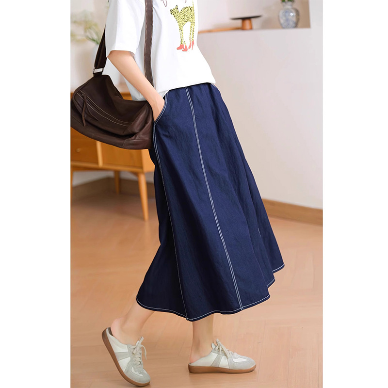 丹宁蓝牛仔半身裙女士夏季出游穿搭松紧腰显瘦小个子中长款A字裙