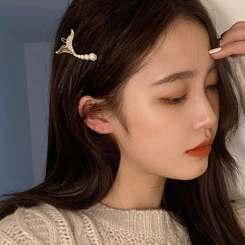日系轻奢珍珠美人鱼尾发夹边夹网红气质刘海夹韩国发饰一字夹顶夹