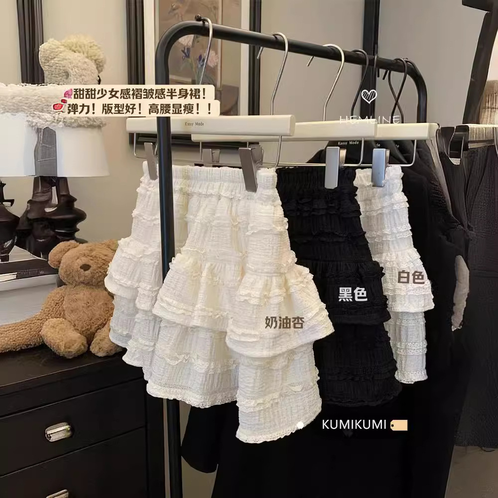 法式芭蕾风黑色蛋糕裙女夏季甜美风高腰显瘦A字裙半身裙白色短裙