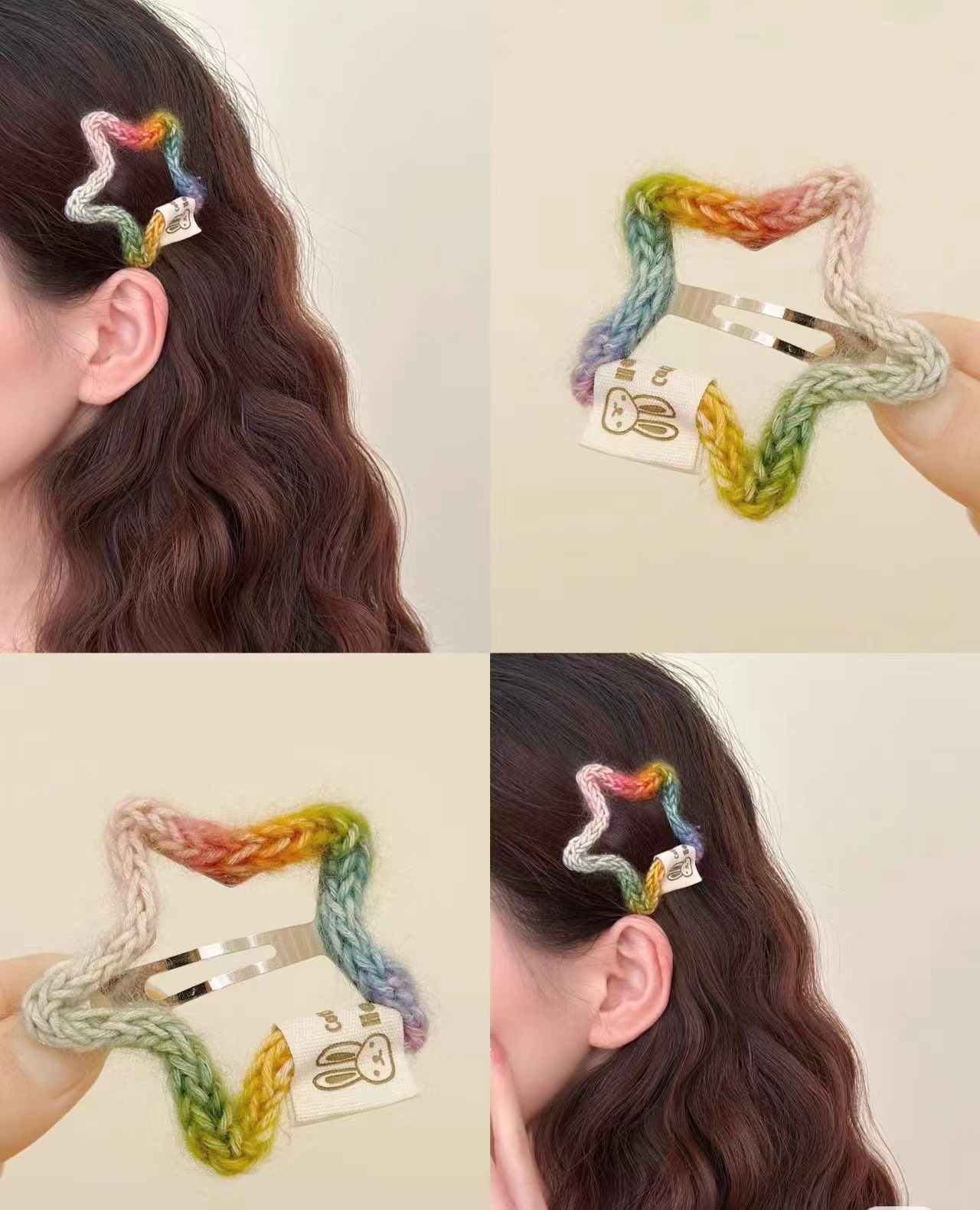 韩系马卡龙色系糖果侧边夹编织星星发夹甜美彩色可爱少女心手工发夹