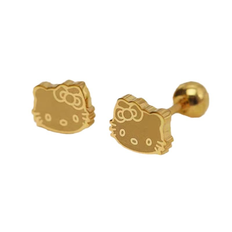 韩式风新款小众甜美可爱KT猫咪拧螺丝耳骨钉时尚个性百搭钛钢耳饰