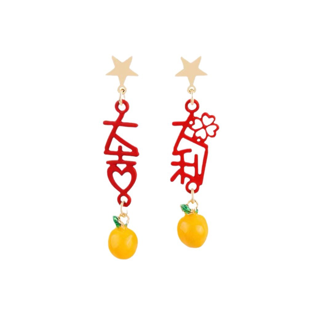 红色大吉大利耳环新款潮气质喜庆桔子耳钉过年耳饰新年饰品