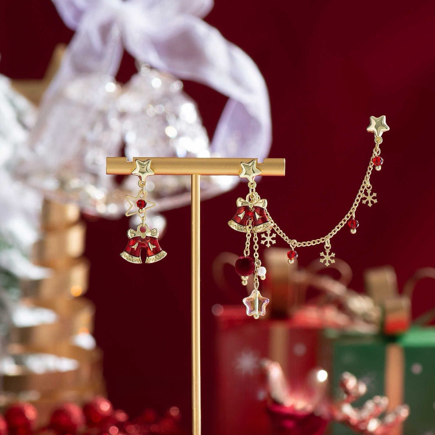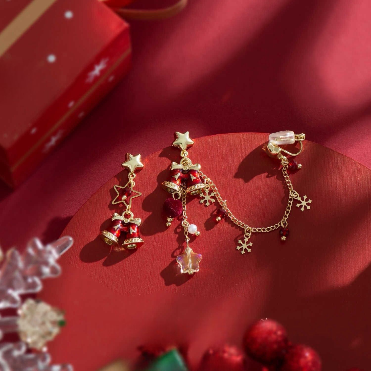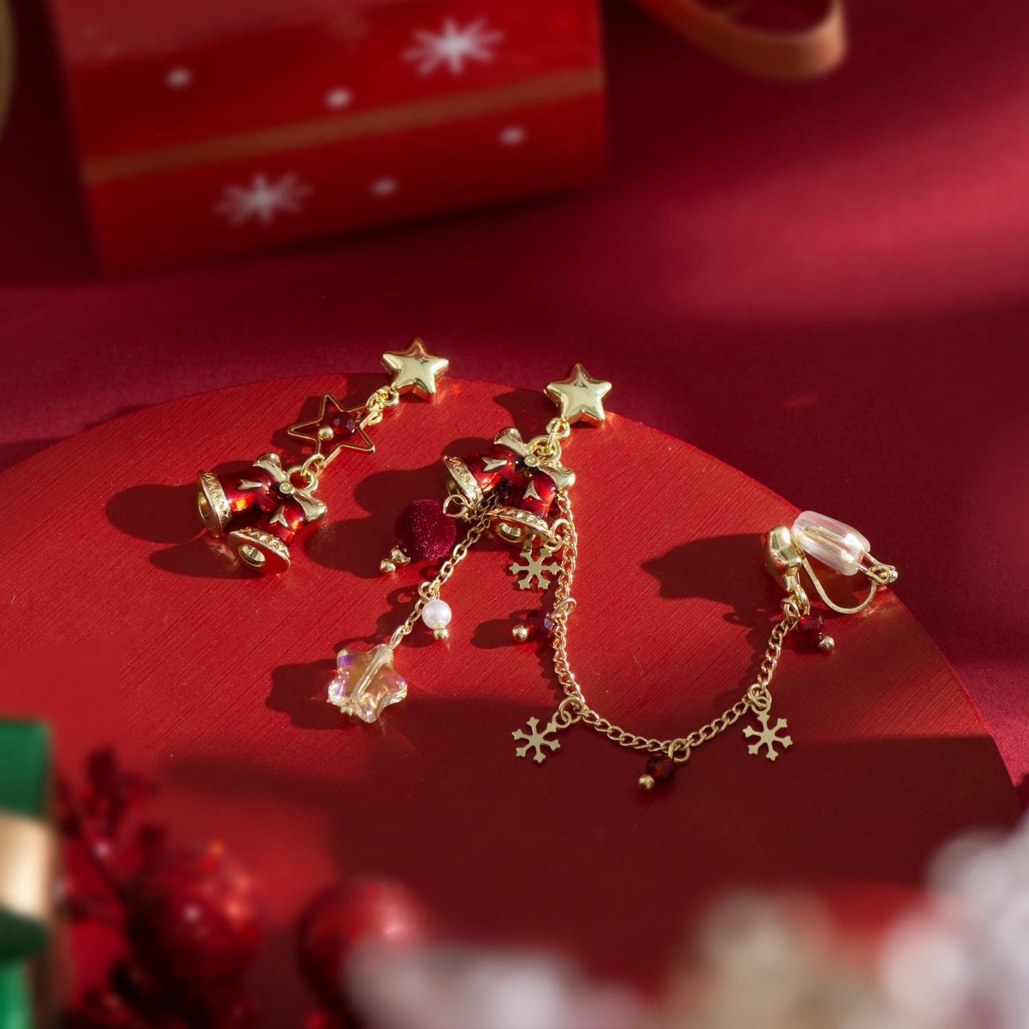 新年元旦铃儿响叮当甜美红色铃铛耳钉耳骨夹耳饰氛围感耳环耳夹