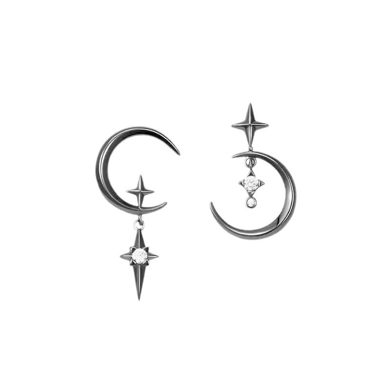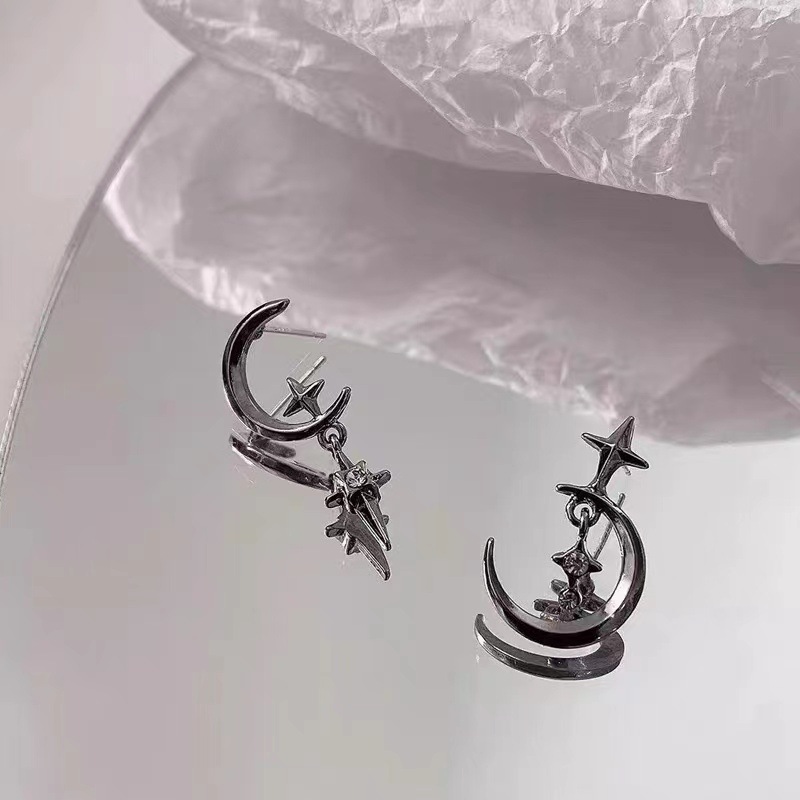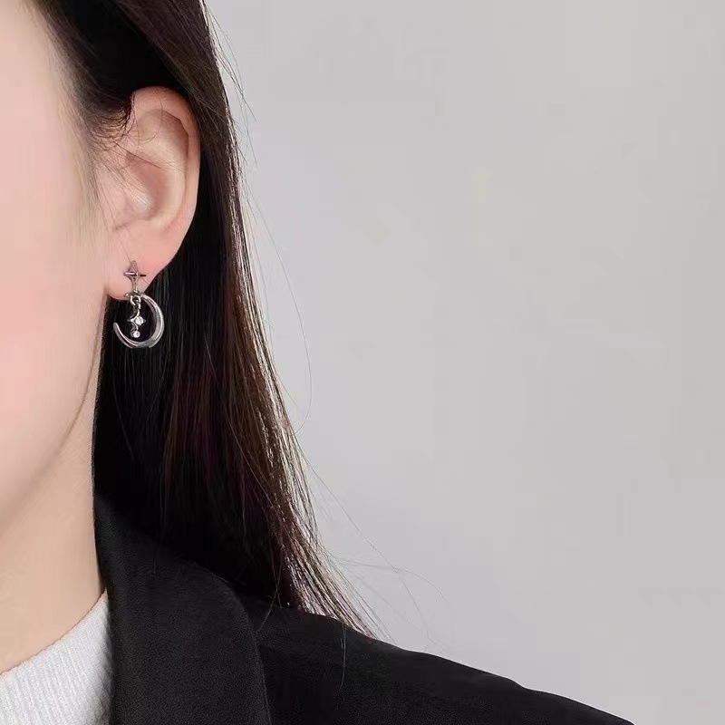925纯银黑暗风ins个性时尚小众设计感星夜月蚀耳钉女高级耳环耳饰