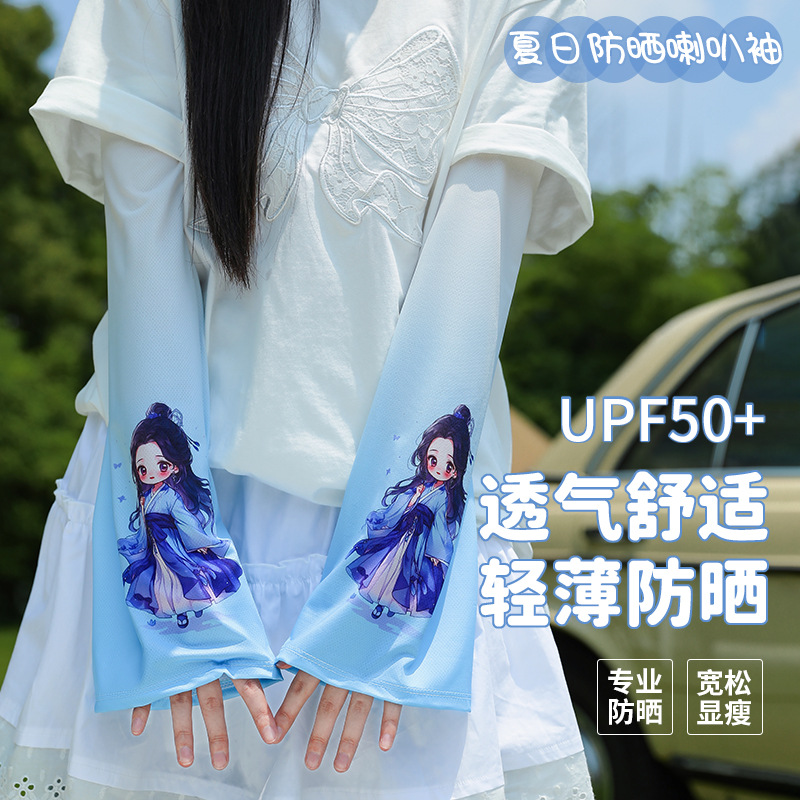 夏季冰袖可爱古风动漫防晒透气袖套女冰丝户外骑行钓鱼开车遮手背