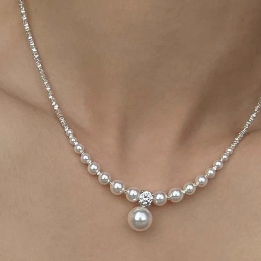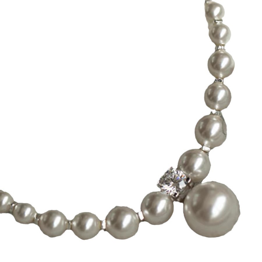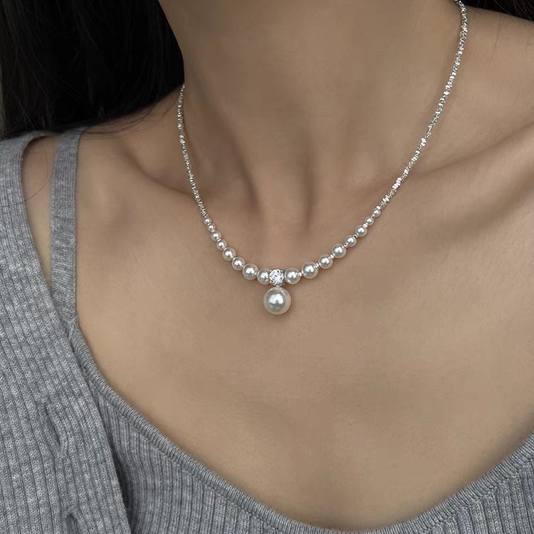 高级感碎银子金属珍珠项链女法式复古个性简约百搭气质颈链锁骨链