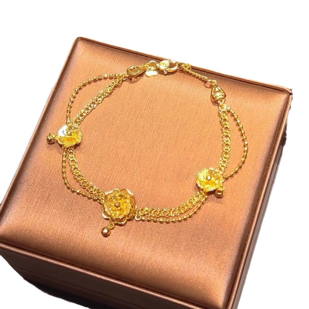 新款古法鎏金色玫瑰花双层缠绕手链气质百搭复古高颜值精致手饰女