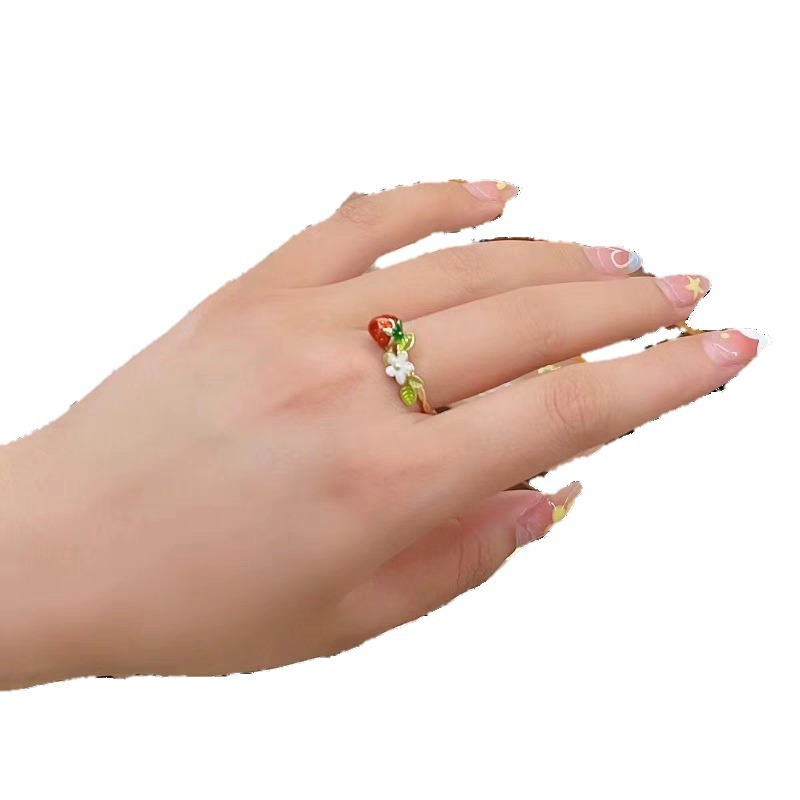 时尚新中式草莓新款手镯可调节开口手镯可爱戒指轻奢小众气质手链