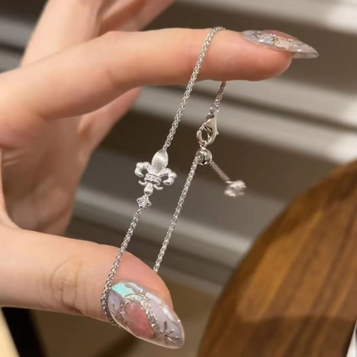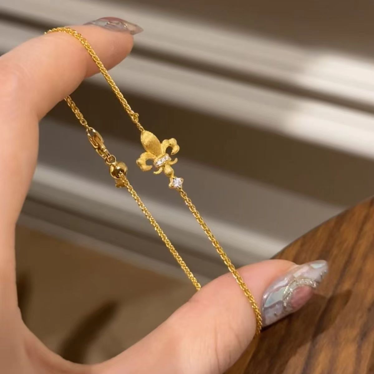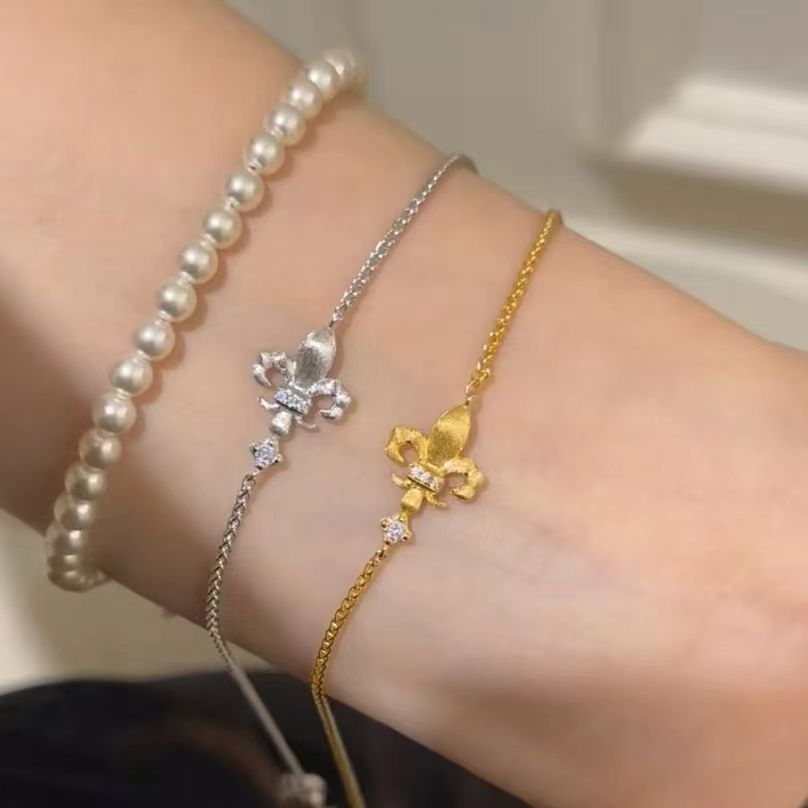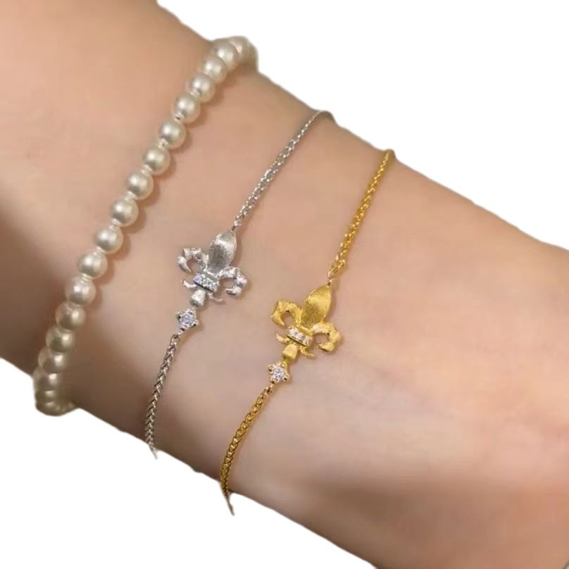 鸢尾花拉丝手链简约时尚百搭神器轻奢高级复古镀银镀金手链