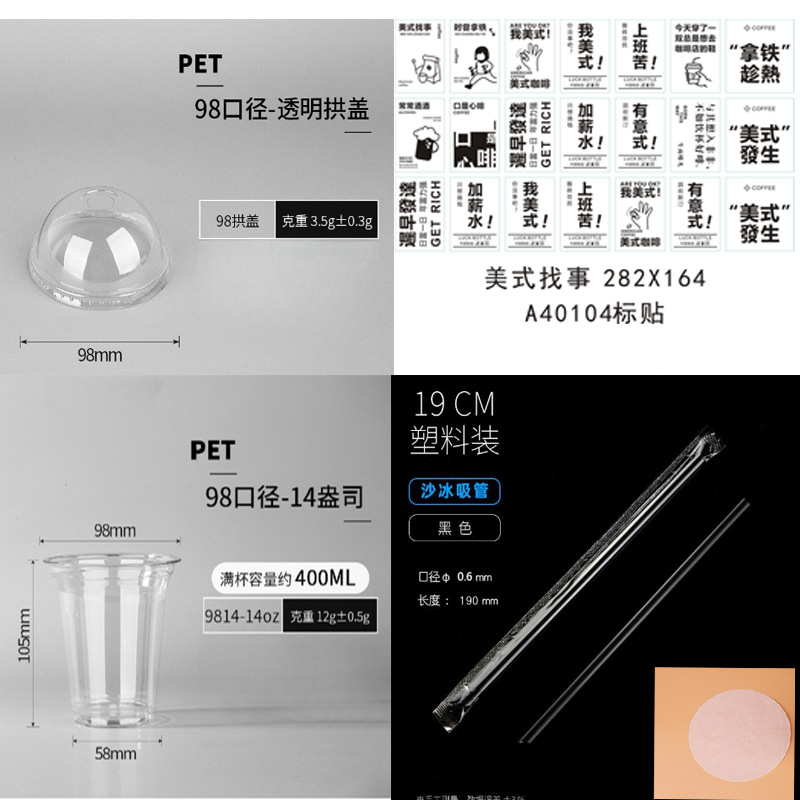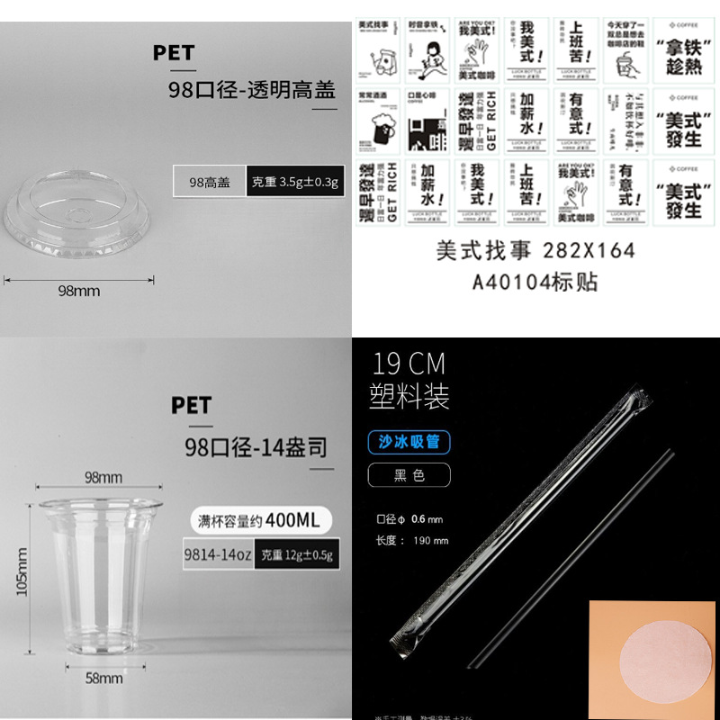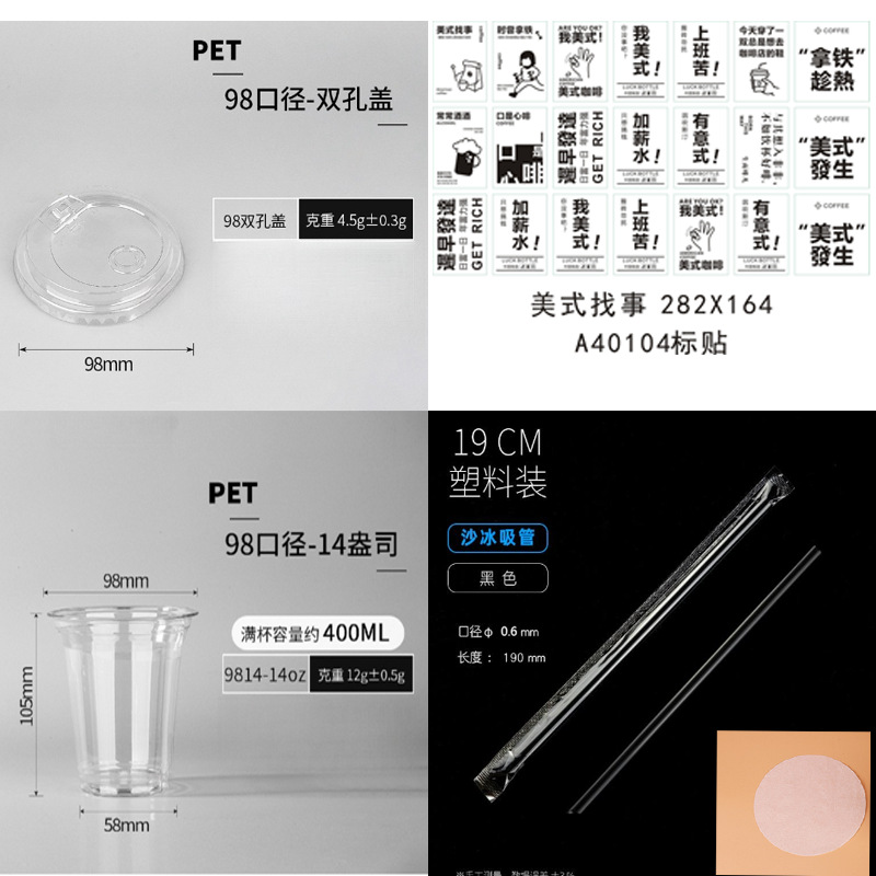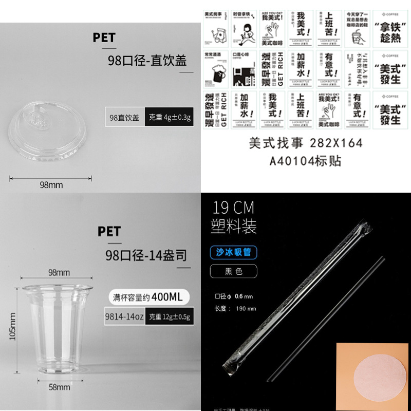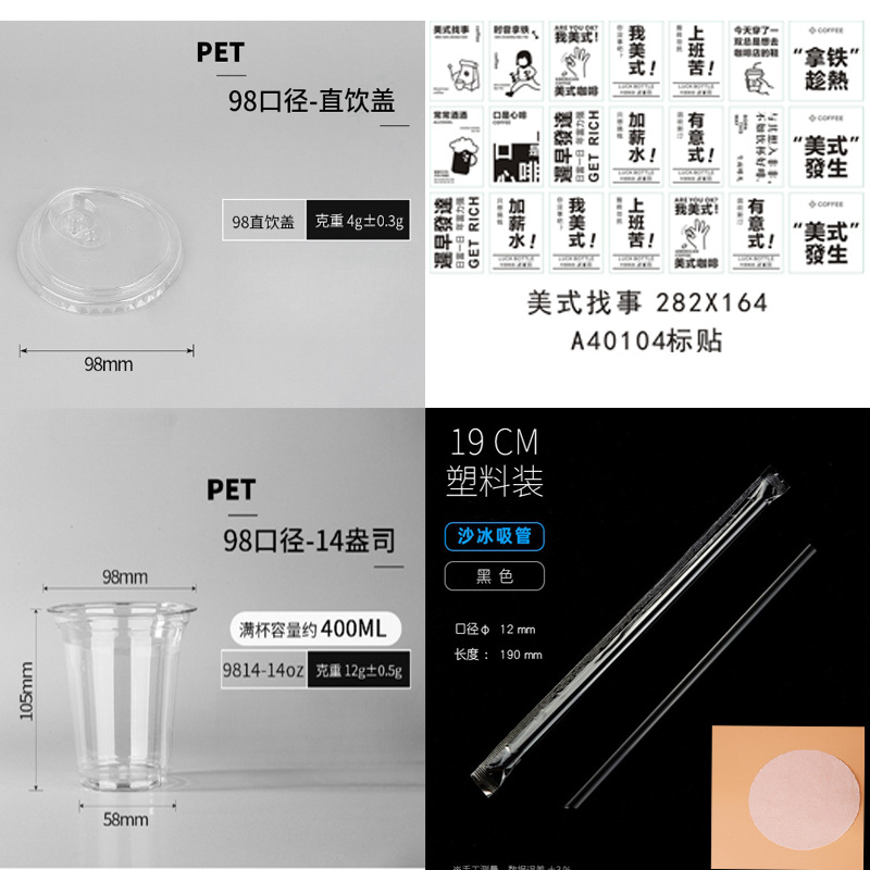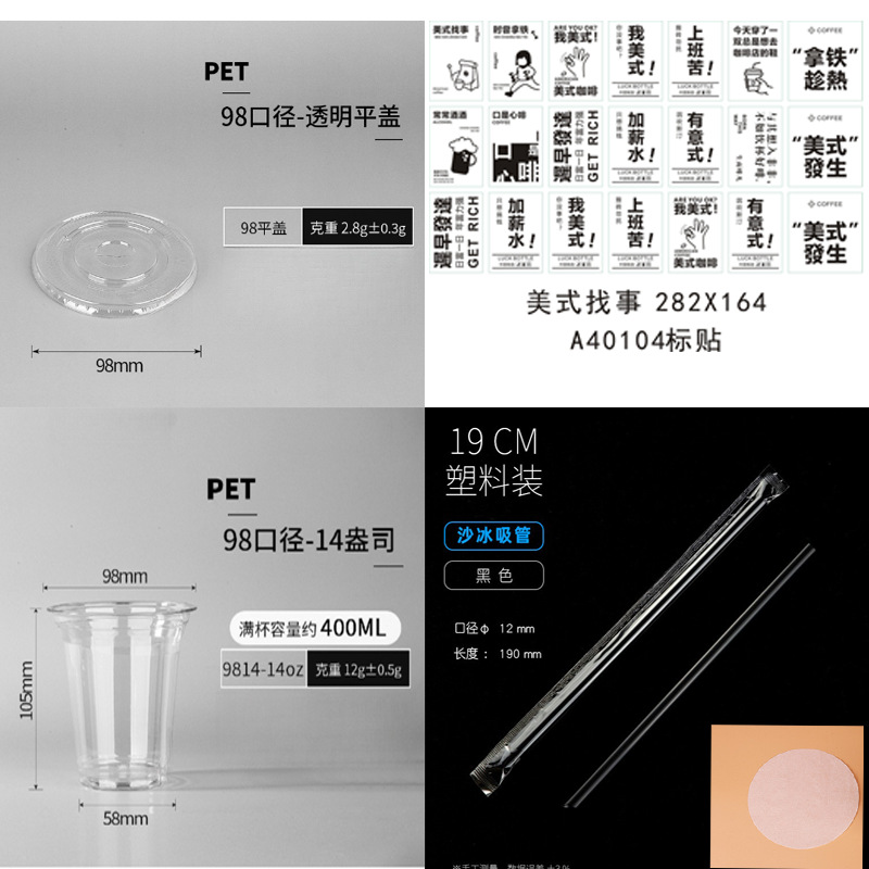 - 98-400平底杯+白色防漏纸+平盖+19cm黑色粗吸管【送贴纸】