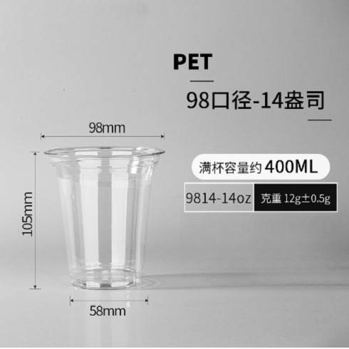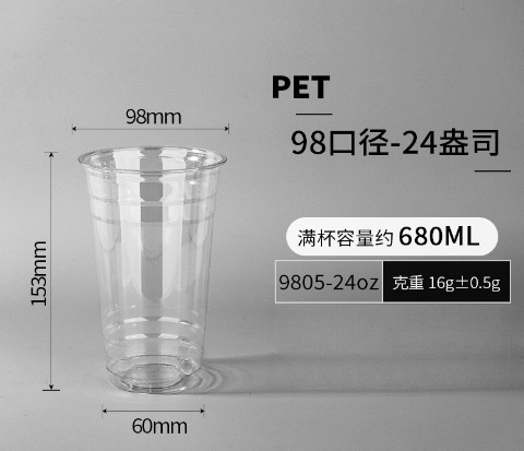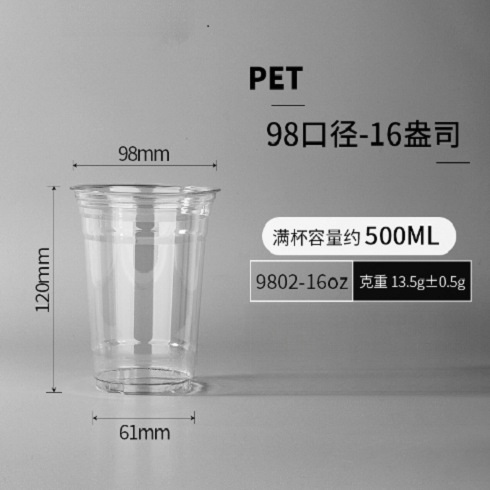 瀚杰98口径一次性冷饮咖啡杯500ml高透加厚奶茶柠檬茶塑料杯子