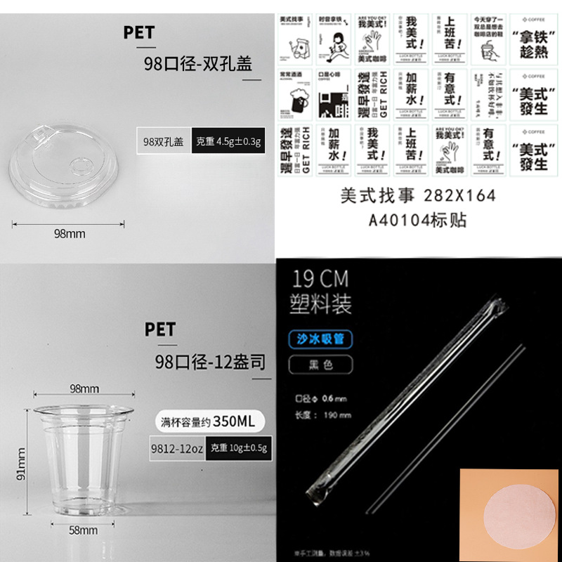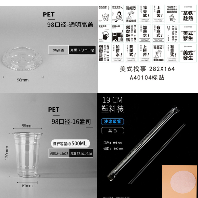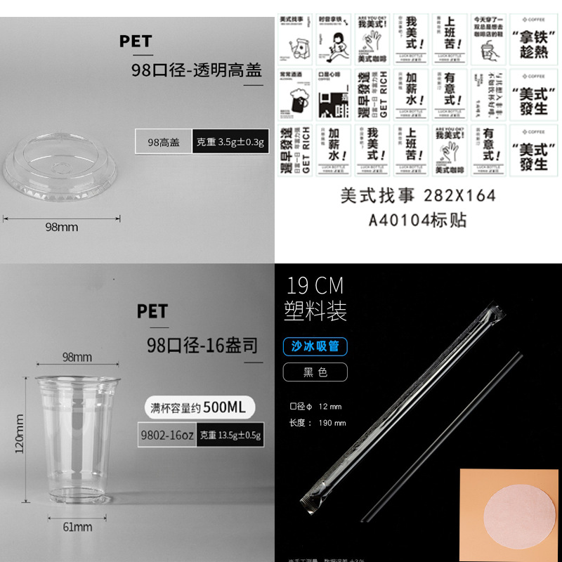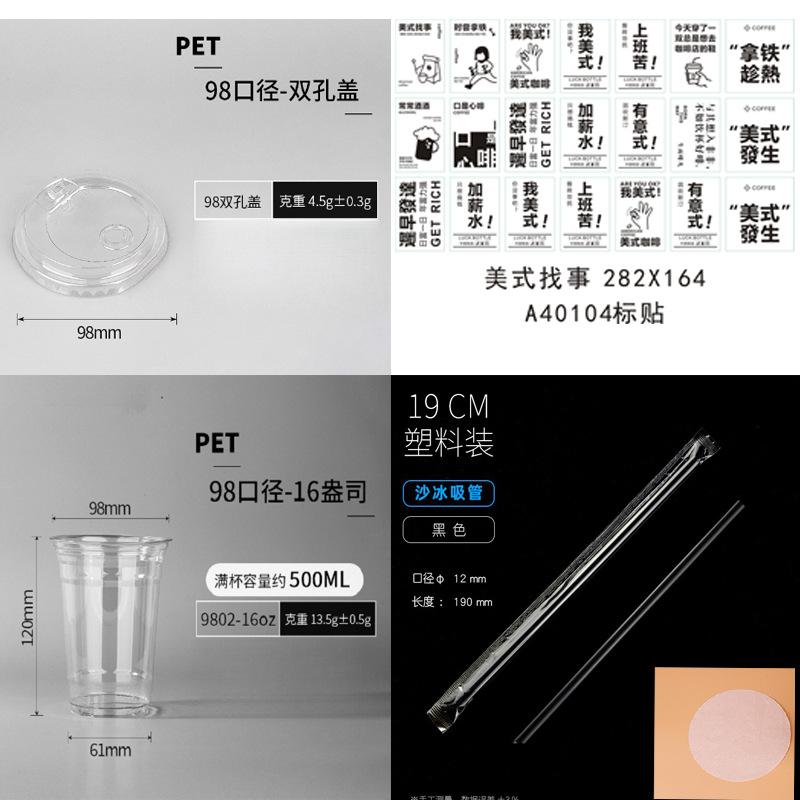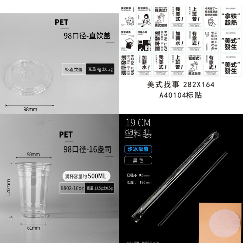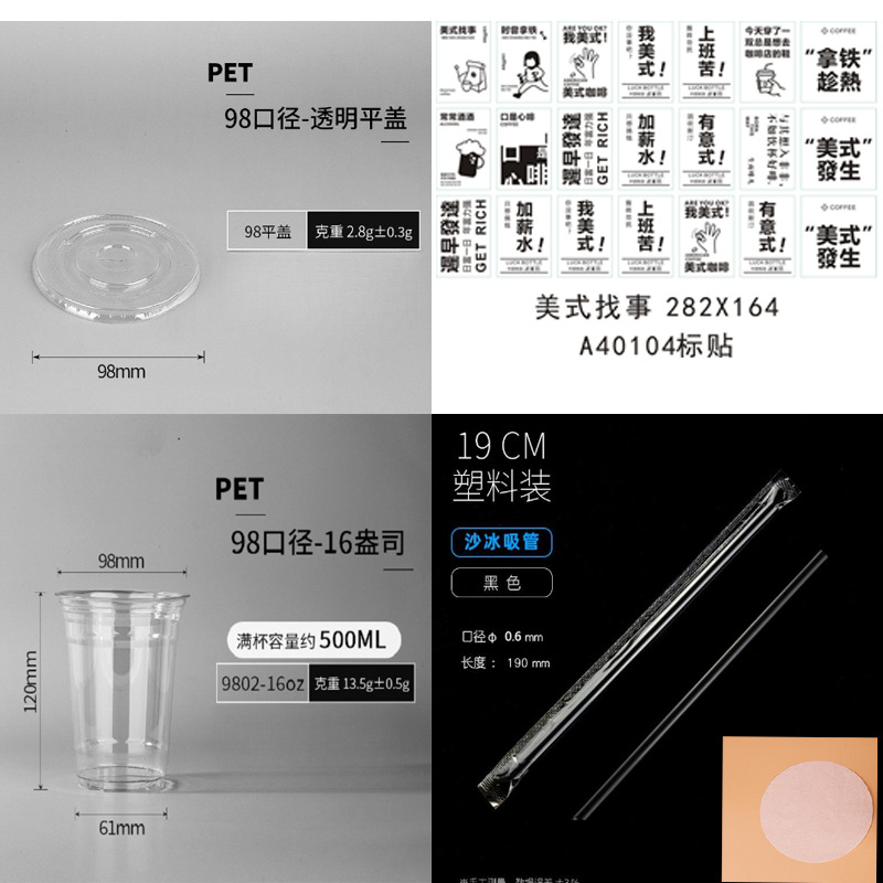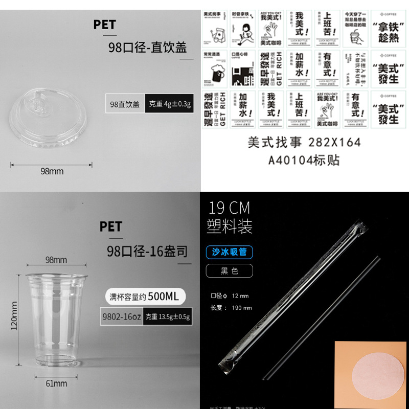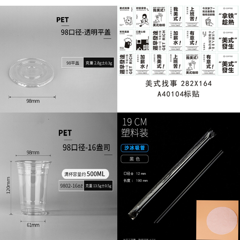 - 98-500平底杯+白色防漏纸+直饮盖+19cm黑色粗吸管【送贴纸】