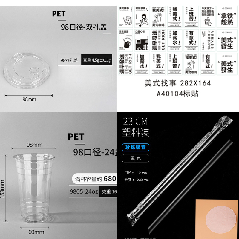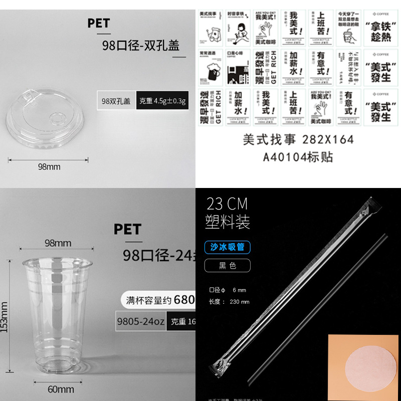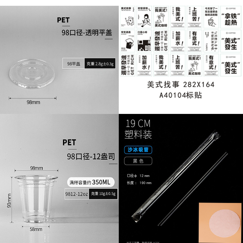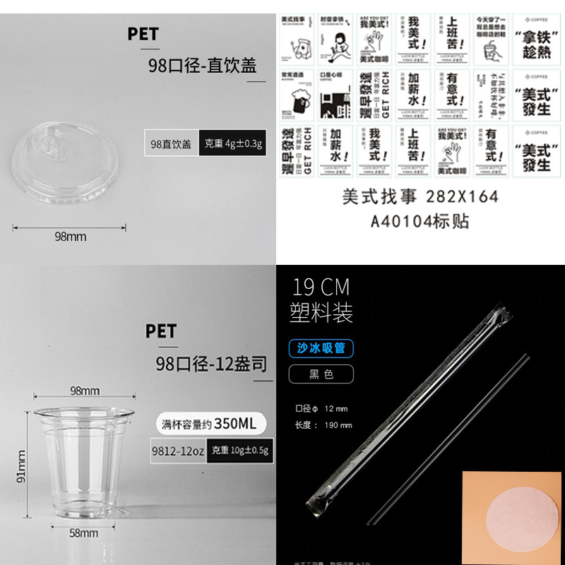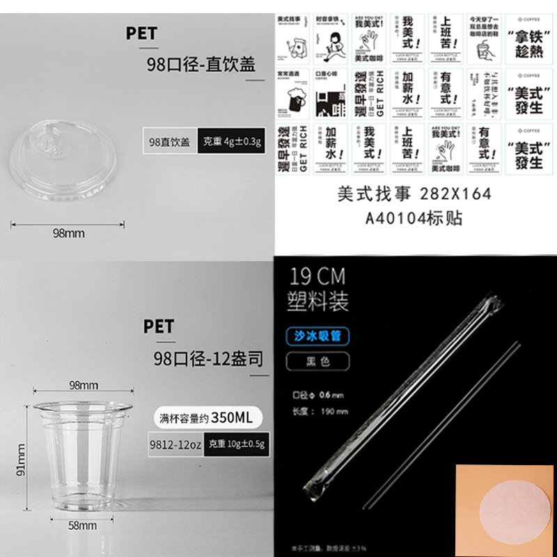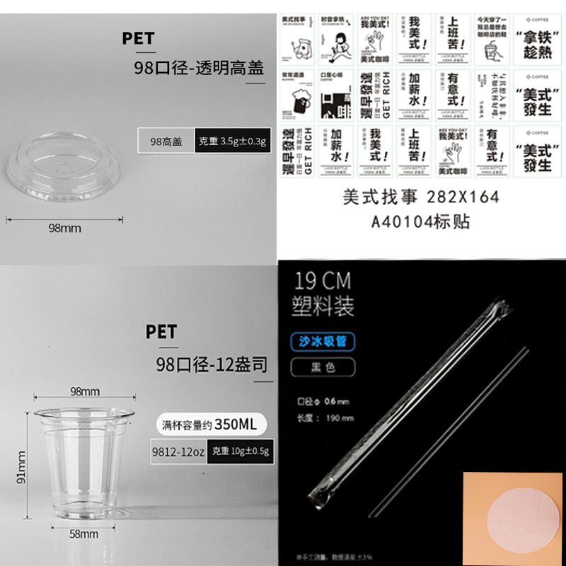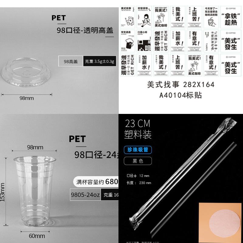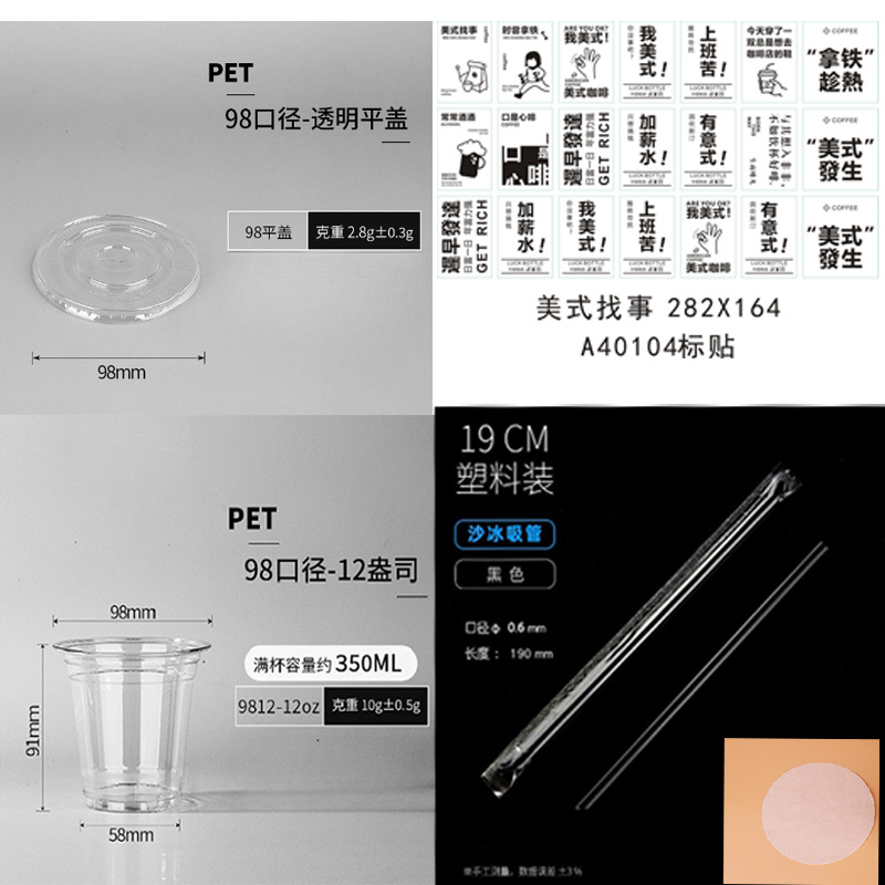 - 98-500平底杯+白色防漏纸+直饮盖+19cm黑色粗吸管【送贴纸】