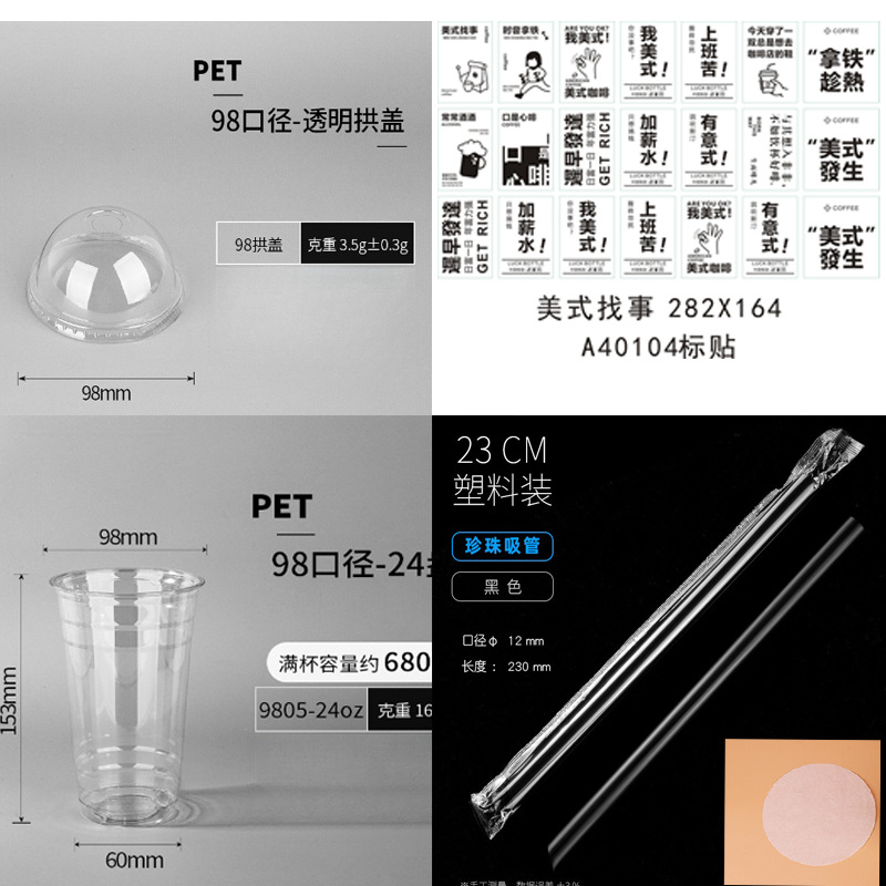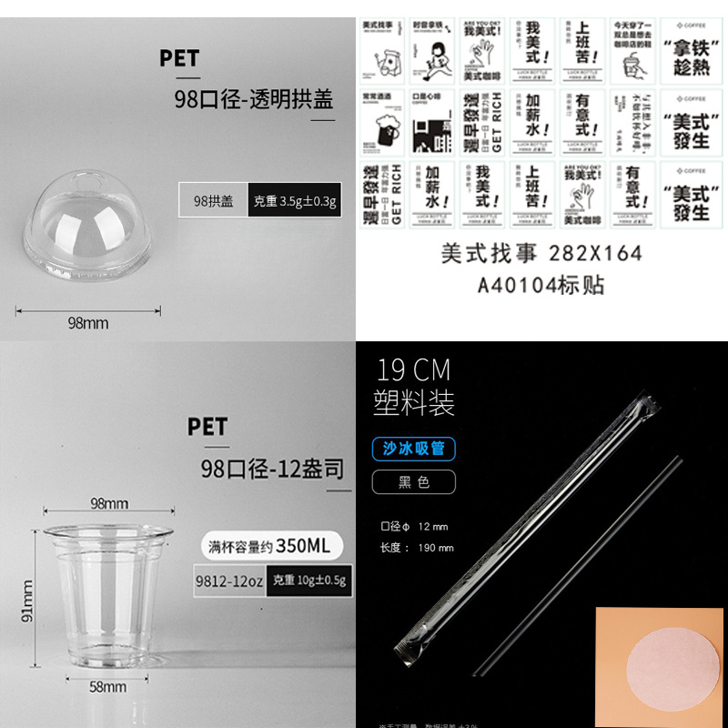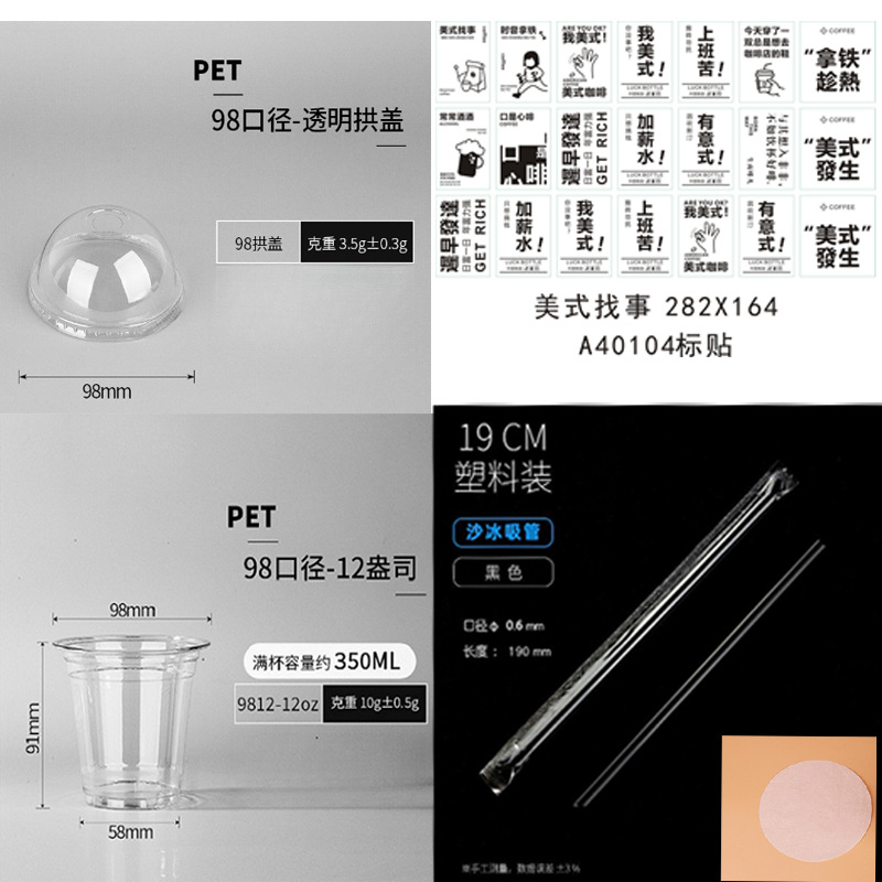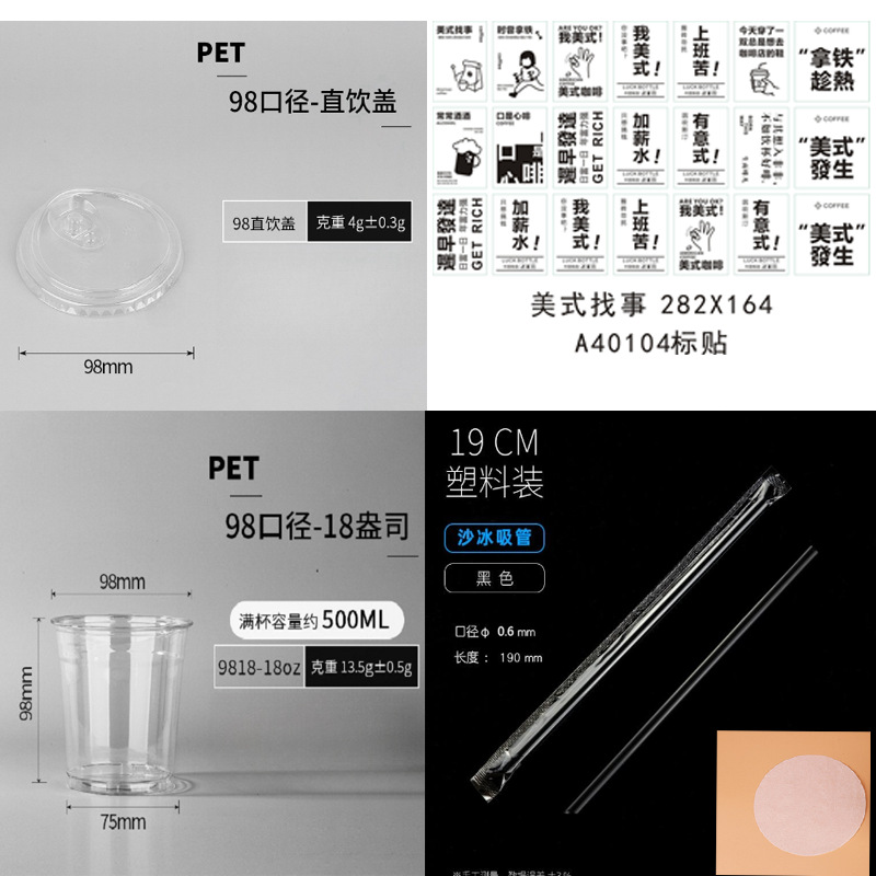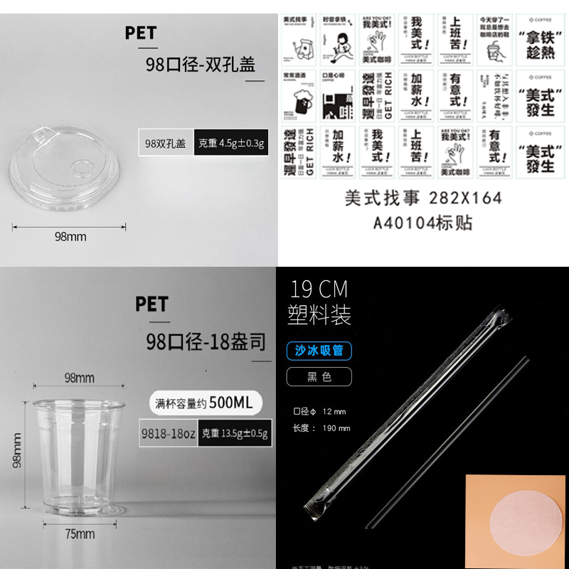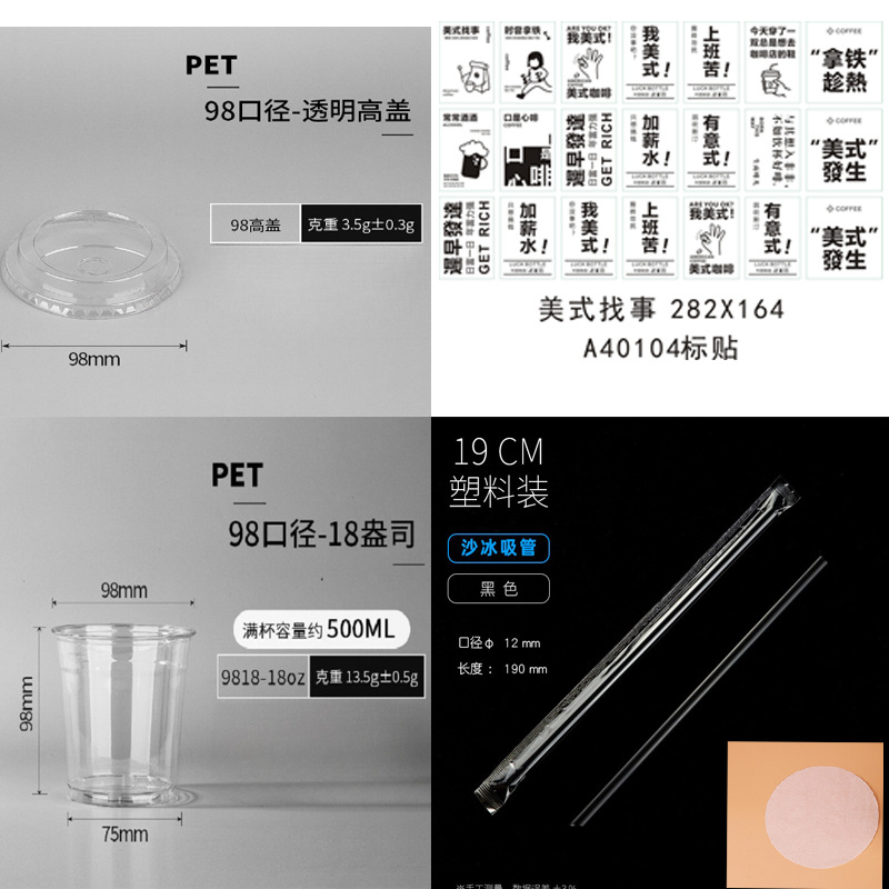 - 98-18平底杯+白色防漏纸+半圆盖+19cm黑色粗吸管【送贴纸】