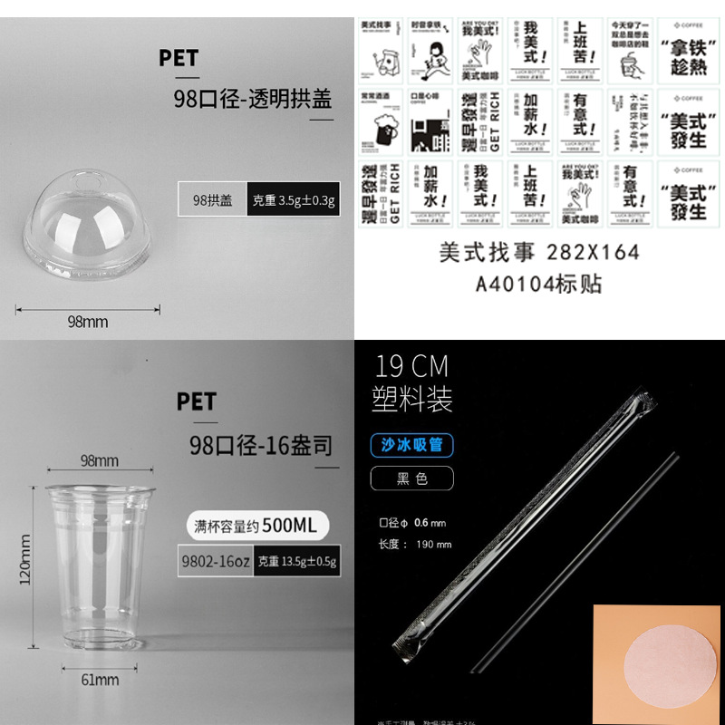 - 98-500平底杯+白色防漏纸+拱盖+19cm黑色粗吸管【送贴纸】