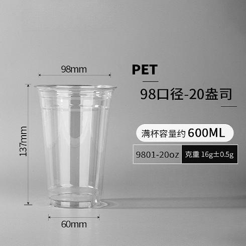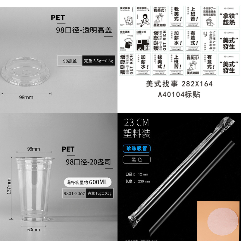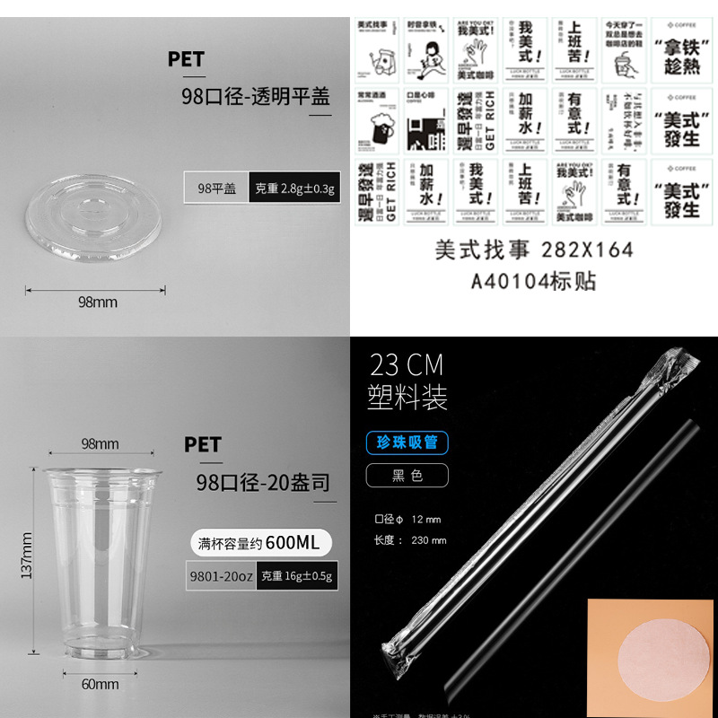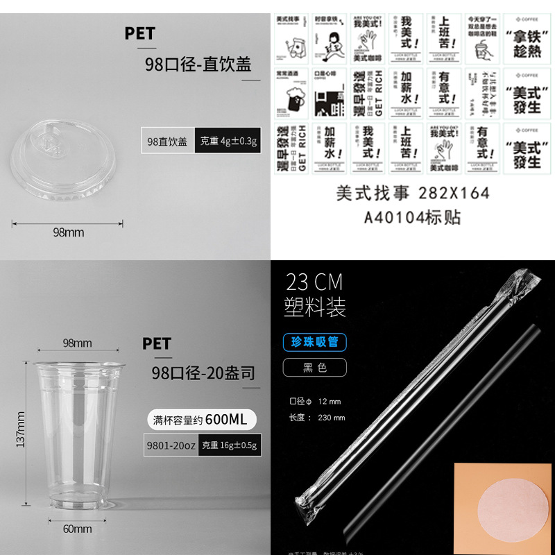 - 98-600平底杯+白色防漏纸+直饮盖+23cm黑色粗吸管【送贴纸】