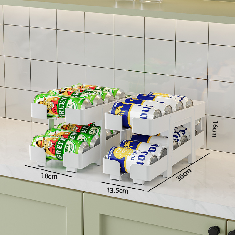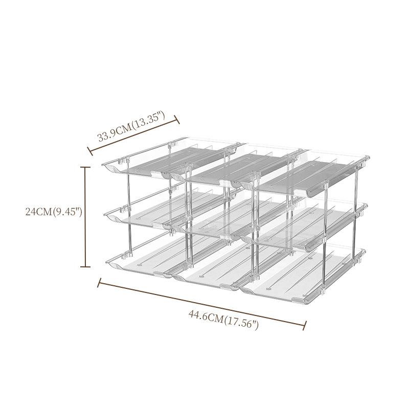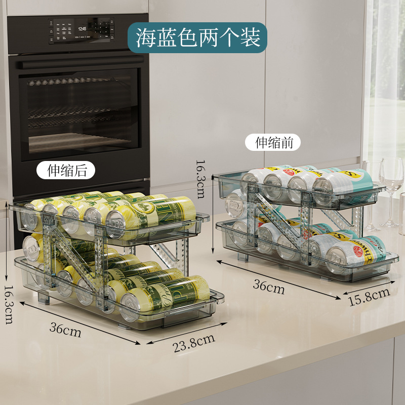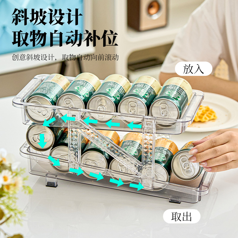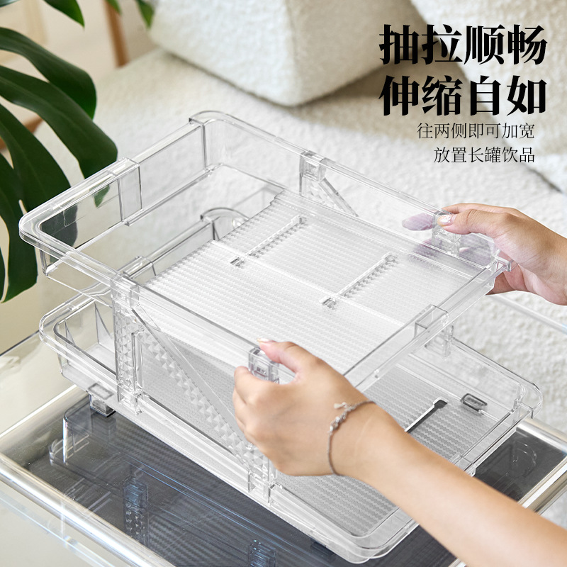 跨境可伸缩饮料收纳盒自动补位透明双层罐头收纳架冰箱可乐收纳盒