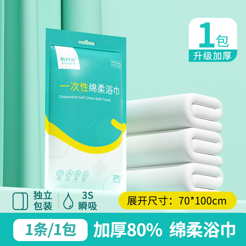有时光一次性浴巾毛巾洗脸巾独立包装加大加厚绵柔浴巾大号便携