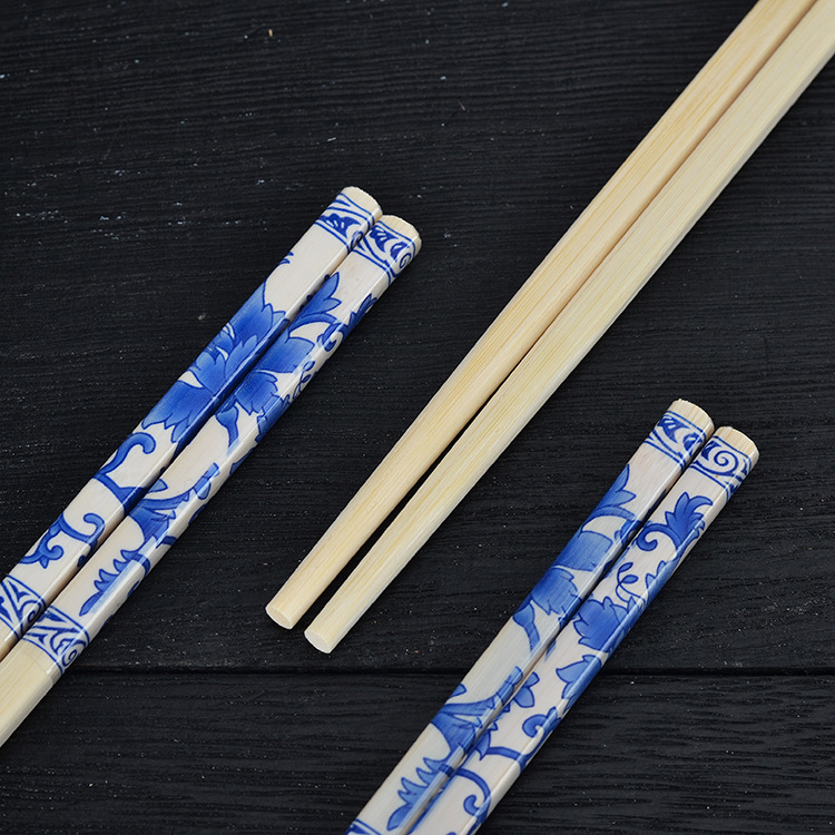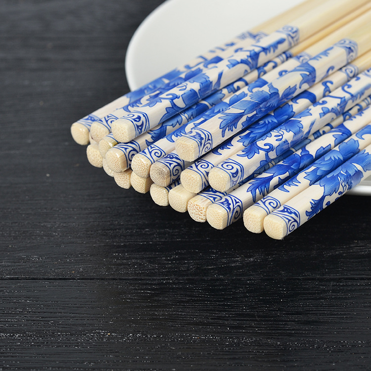 青花瓷印花竹筷家用酒店餐饮一次性筷子opp独立包装无漆无蜡防滑