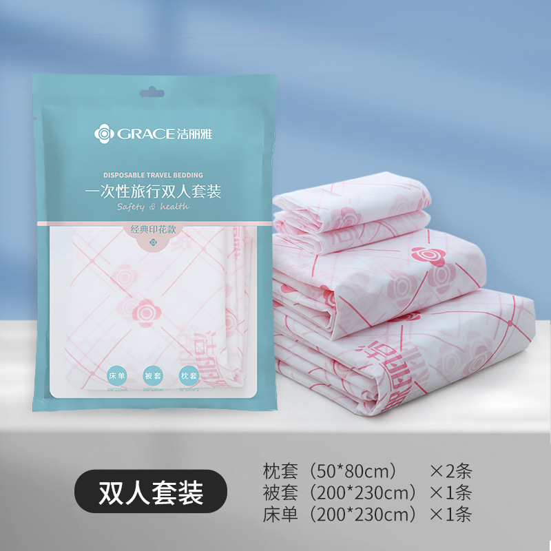 - 一次性双人印花床单被套【枕套+床单+被套】