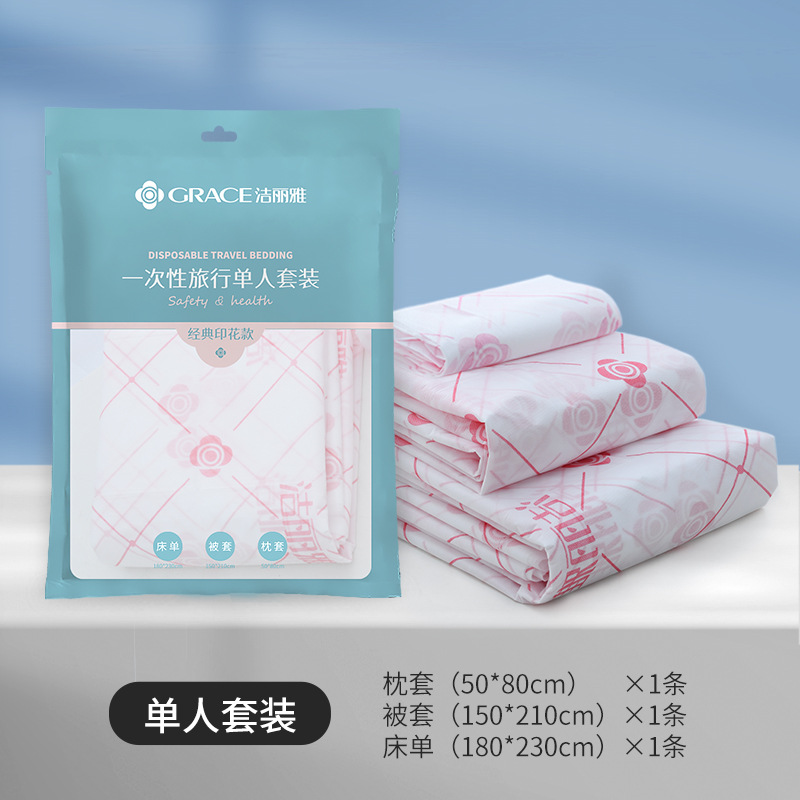 - 一次性单人印花床单被套【枕套+床单+被套】