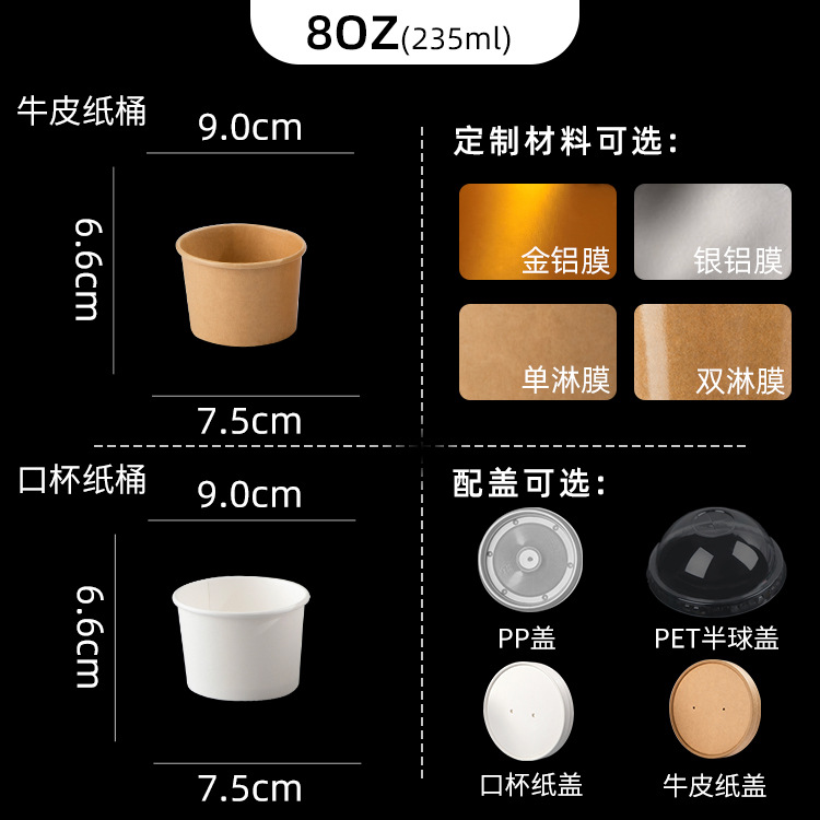 - 8盎司;牛皮纸汤桶-双PE淋膜-盖另拍