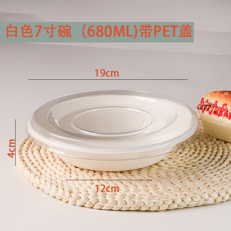 - 7寸碗 680ML白色碗带pet盖(50倍数下单)