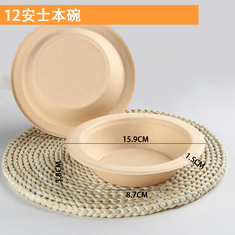 一次性纸浆碗餐具套装纸碗可降解商用即弃圆形餐碗芋泥刨冰打包碗