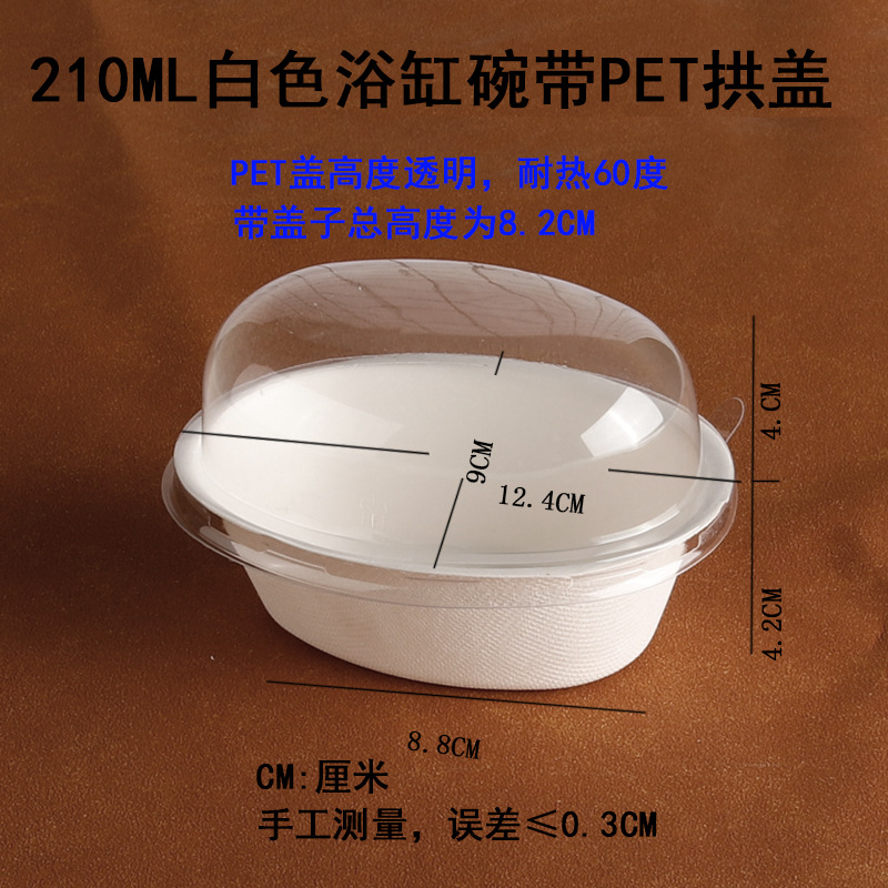 - 210ML白色浴缸碗带pet拱盖(50倍数下单)