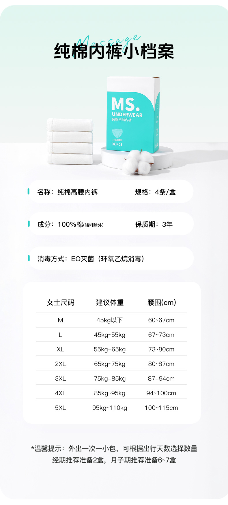 高腰一次性内裤女纯棉灭菌舒适日抛内裤独立包装差旅便携免洗内裤