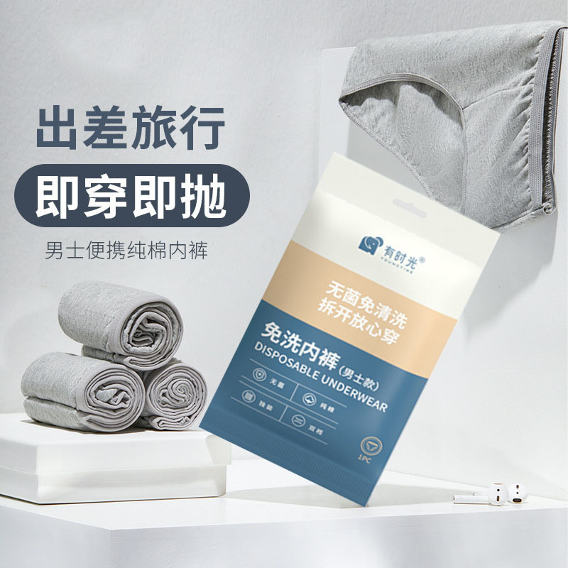 有时光一次性内裤男士全棉纯棉免洗短裤无菌旅行用品单条