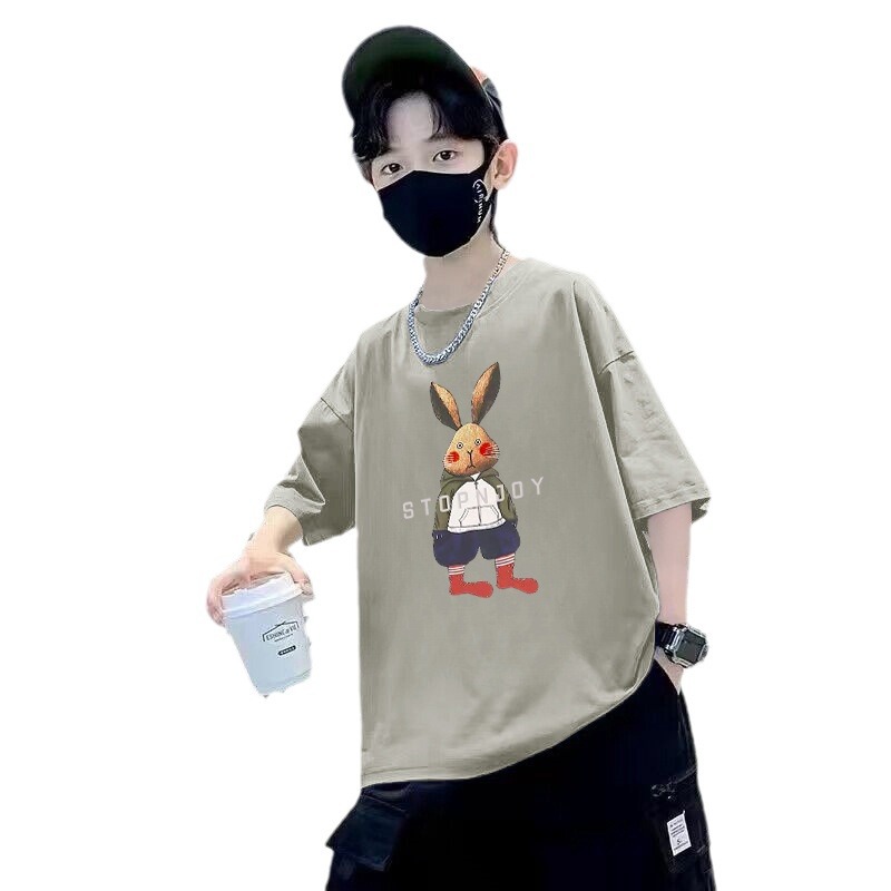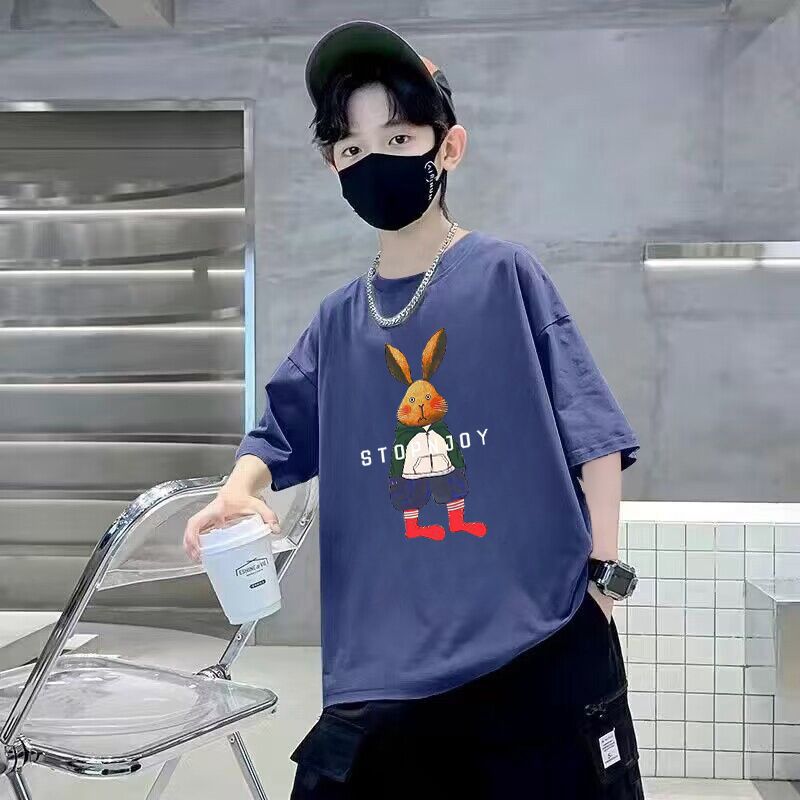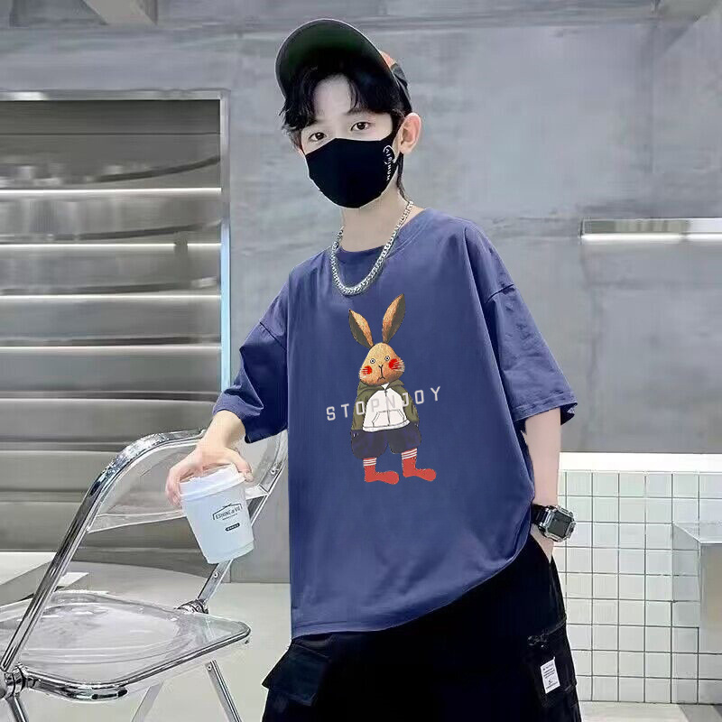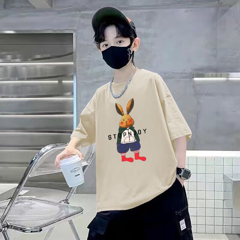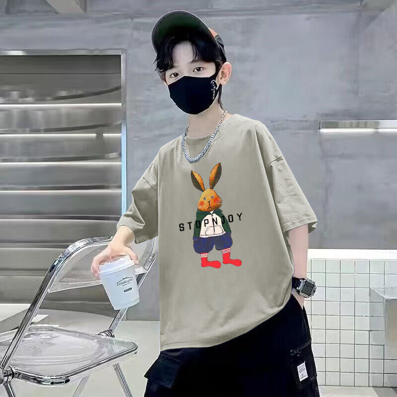 男童短袖棉质t恤夏季新款宽松帅气学生卡通印花中大童半袖儿童潮