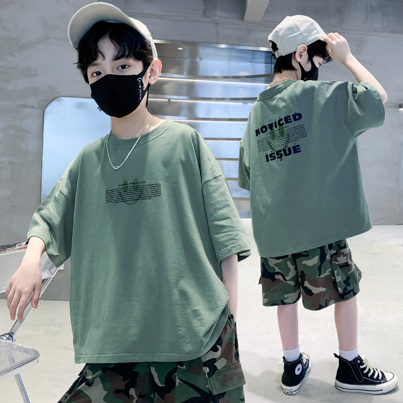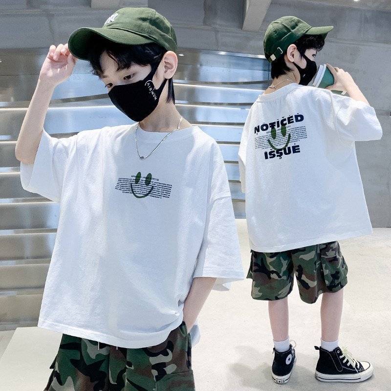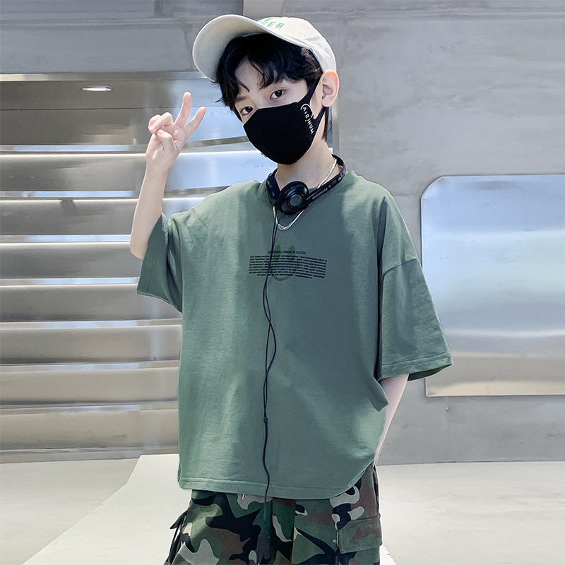 男童短袖纯棉t恤宽松童装夏季韩版休闲中大童半袖t男孩帅气