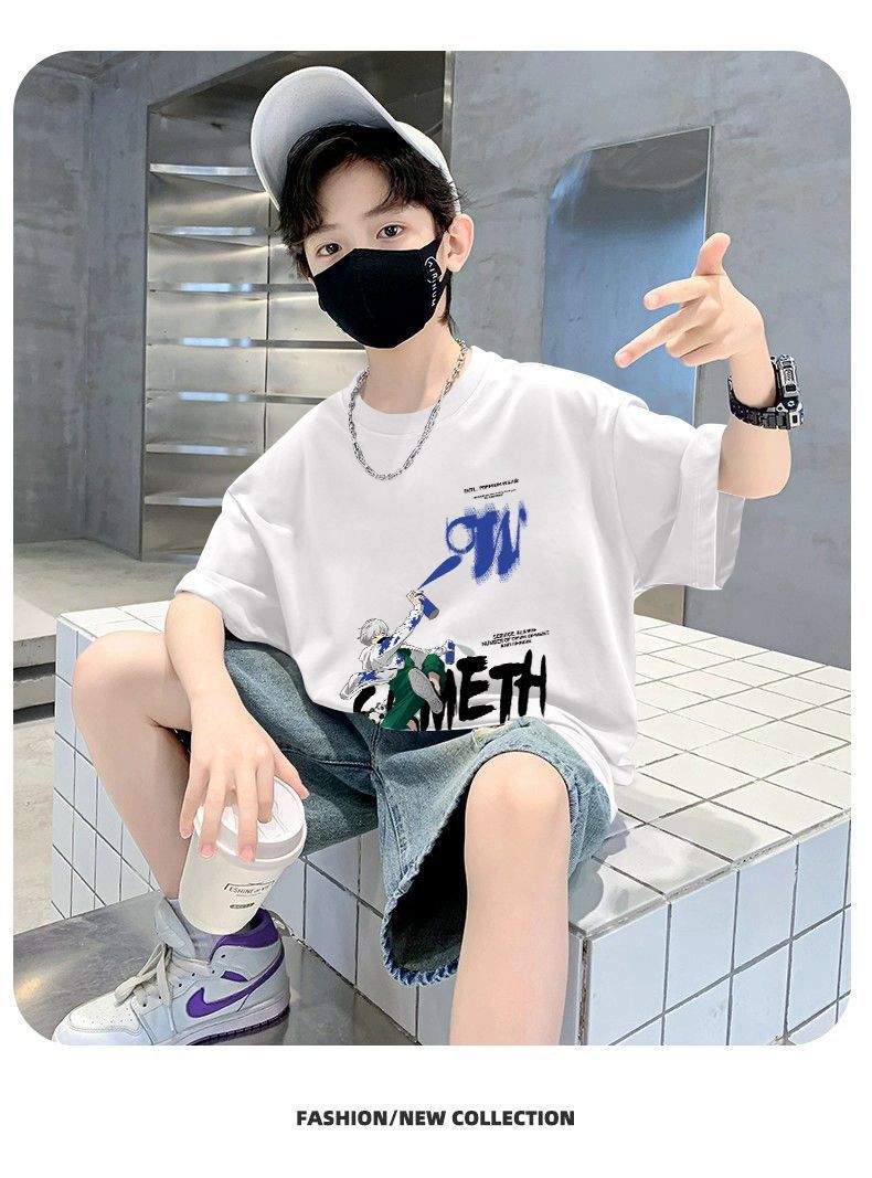 童装男童短袖t恤棉质夏季新款儿童潮范圆领宝宝半袖上衣中大童