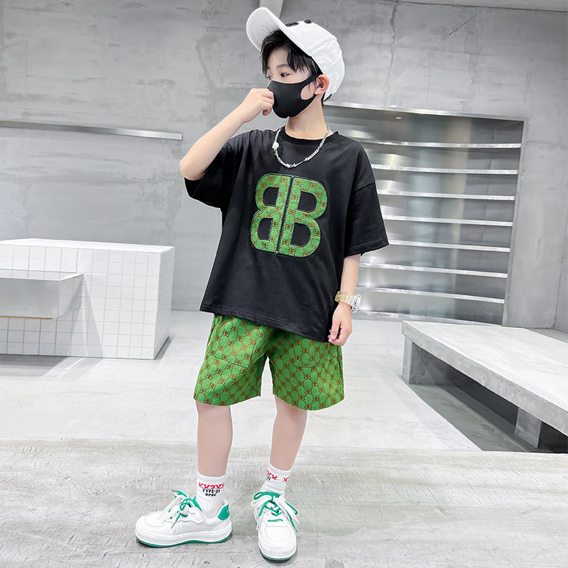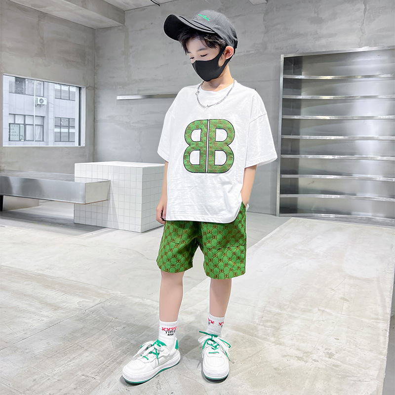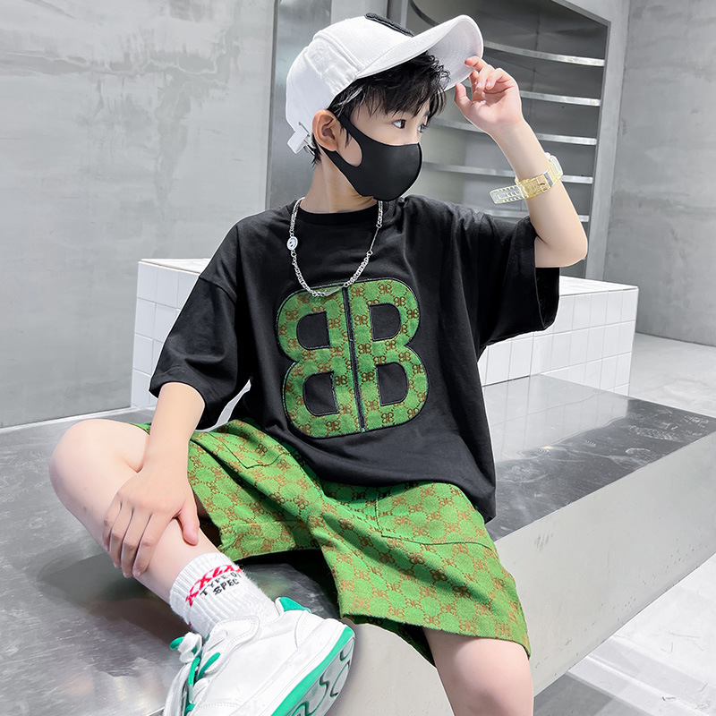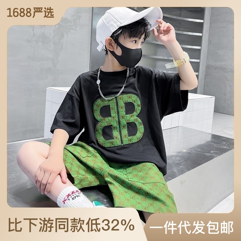 棉质童装男女短袖t恤字母印花夏季新款儿童宝宝半袖上衣中小童