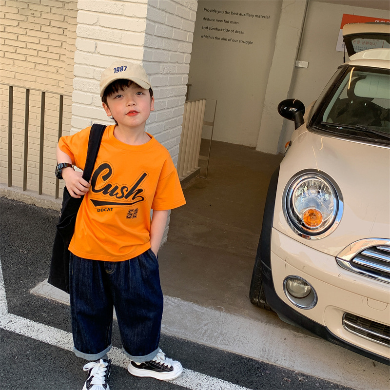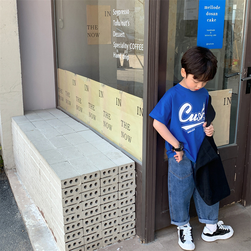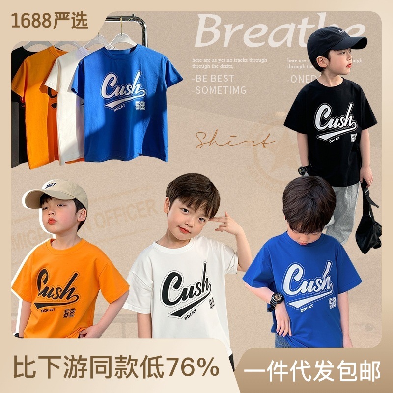 童装男女短袖t恤含棉圆领字母INs夏季新款儿童宝宝半袖上衣中小童