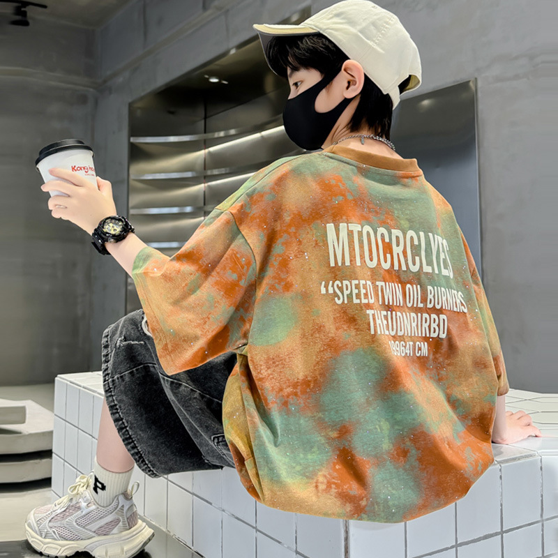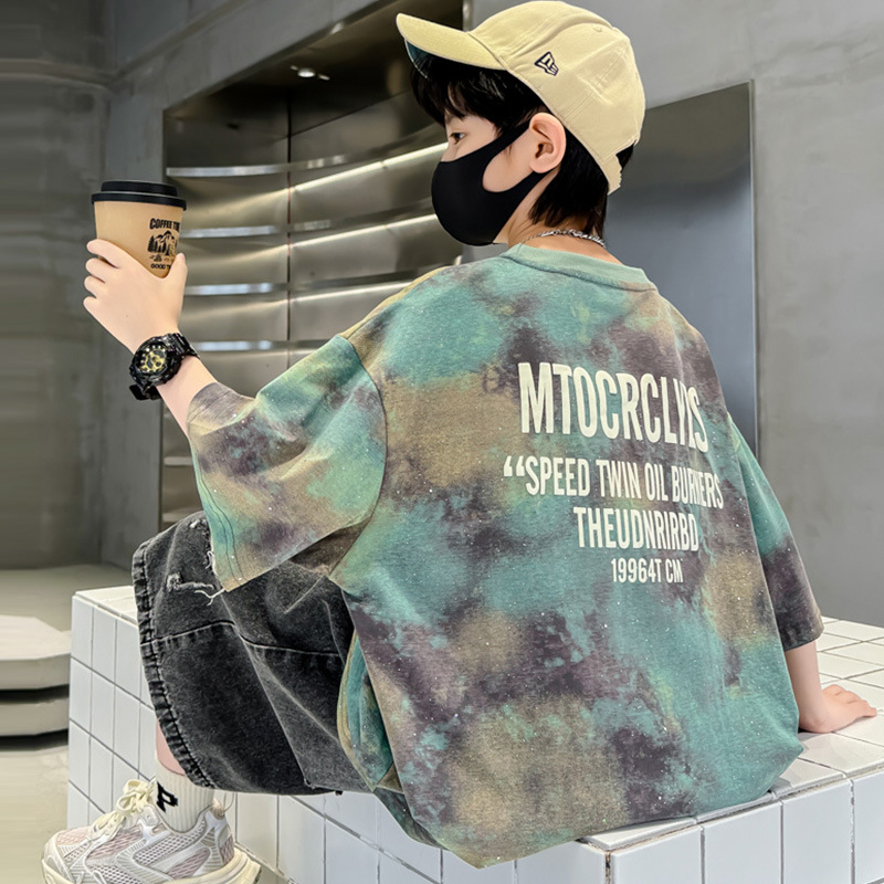 儿童装男童夏装T恤棉质前后印花卡通新款中大童夏季短袖圆领上衣