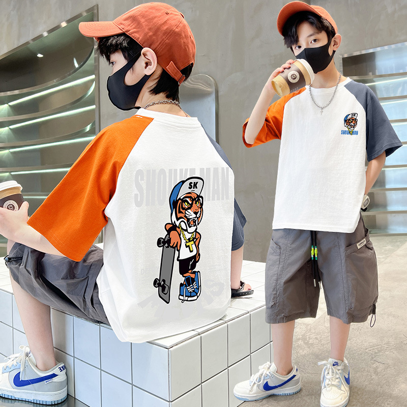 男童短袖T恤夏装童装新款半袖宽松儿童中大童纯棉夏休闲上衣