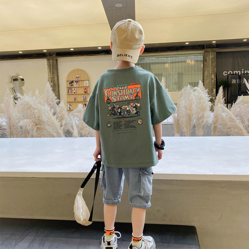 童装男女短袖t恤棉质吸汗透气夏季宽松儿童宝宝半袖上衣中小童潮