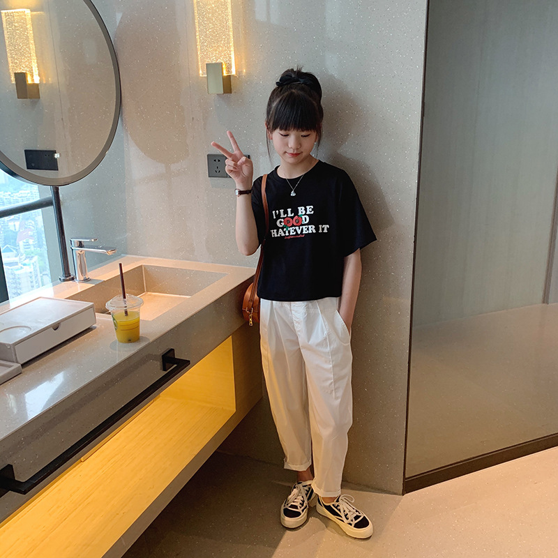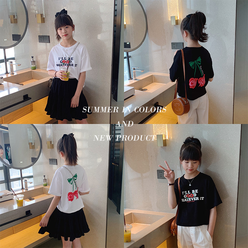 女童短袖t恤夏季新款宽松字母印花儿童装洋气半袖上衣中大童女孩