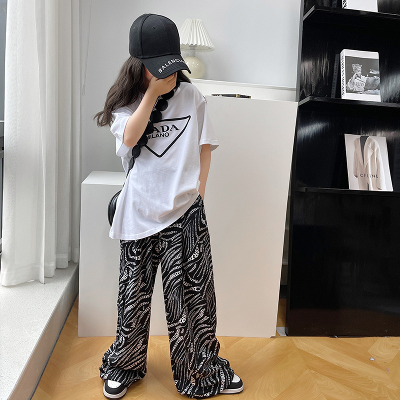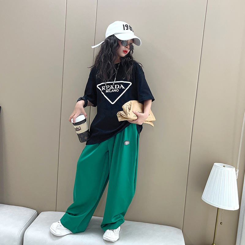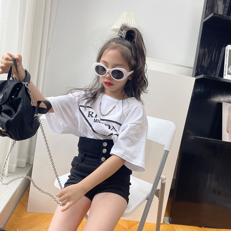 女童短袖t恤夏季新款中大童夏装字母印花洋气儿童装宽松半袖上衣