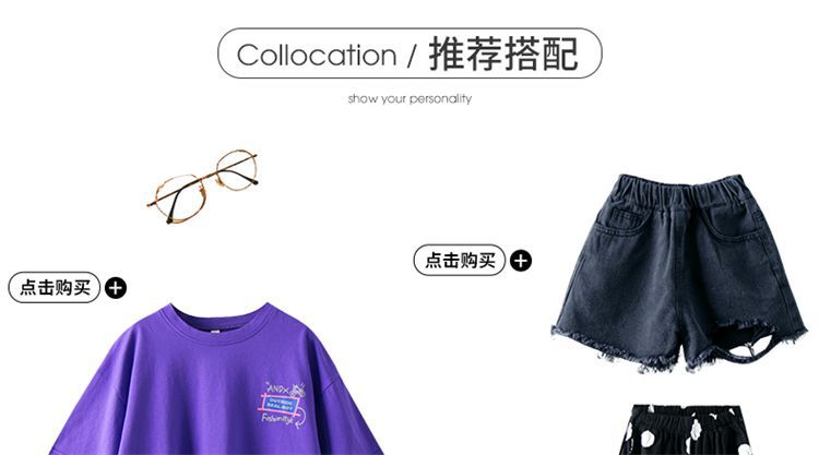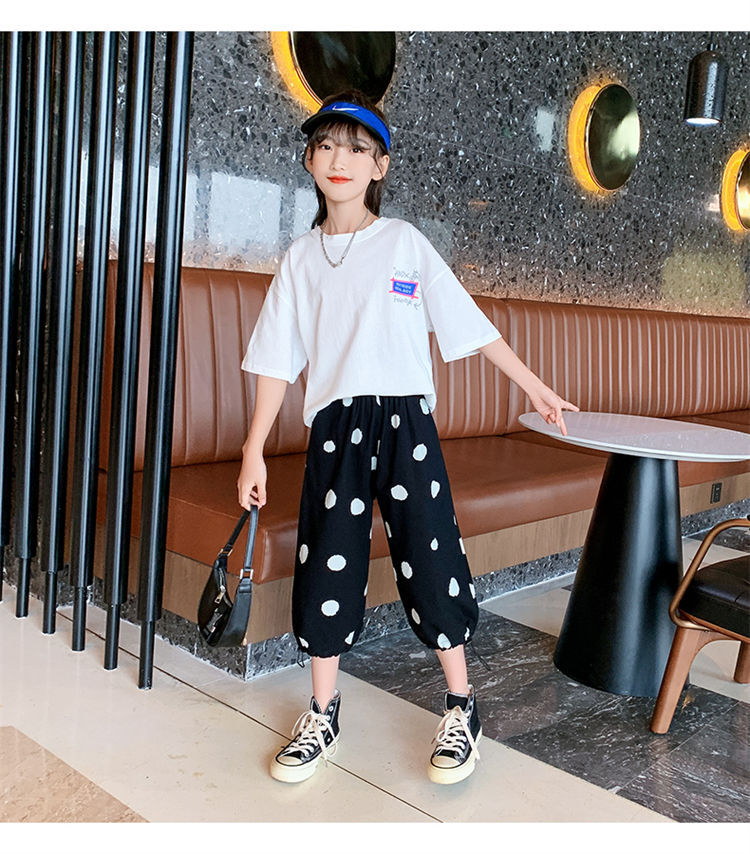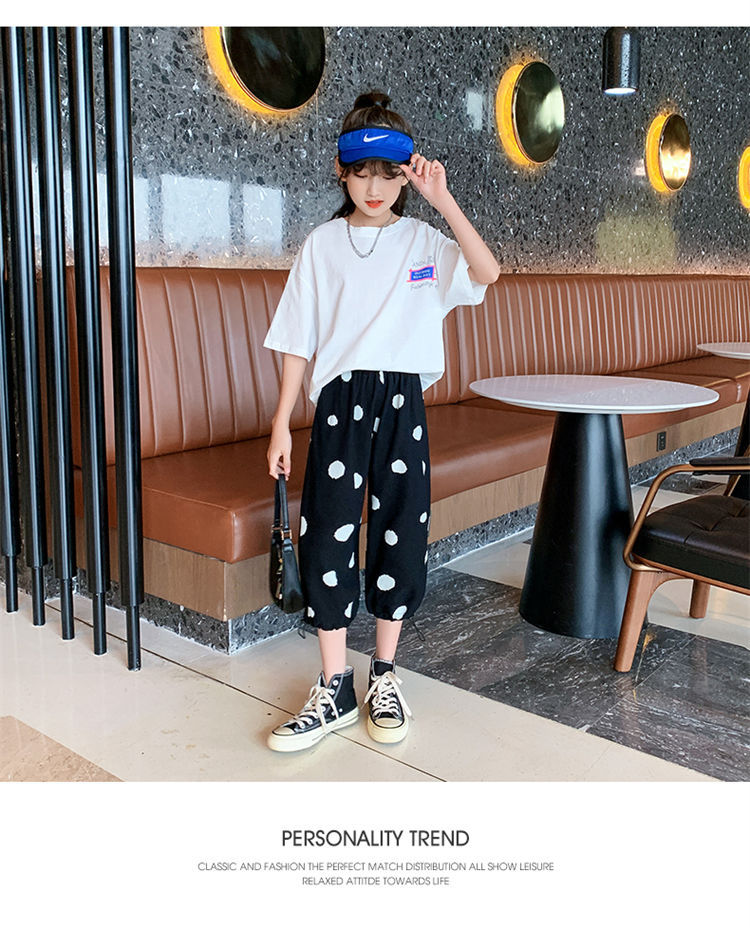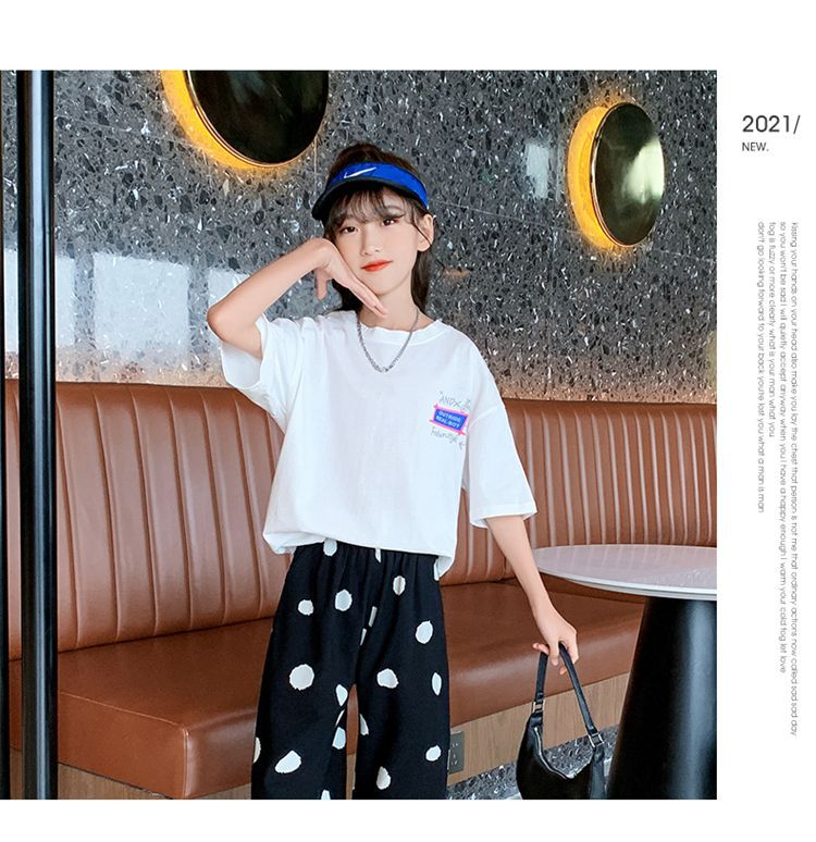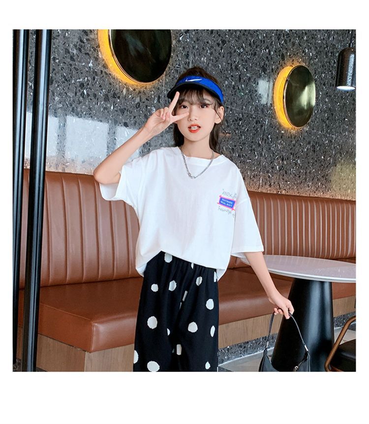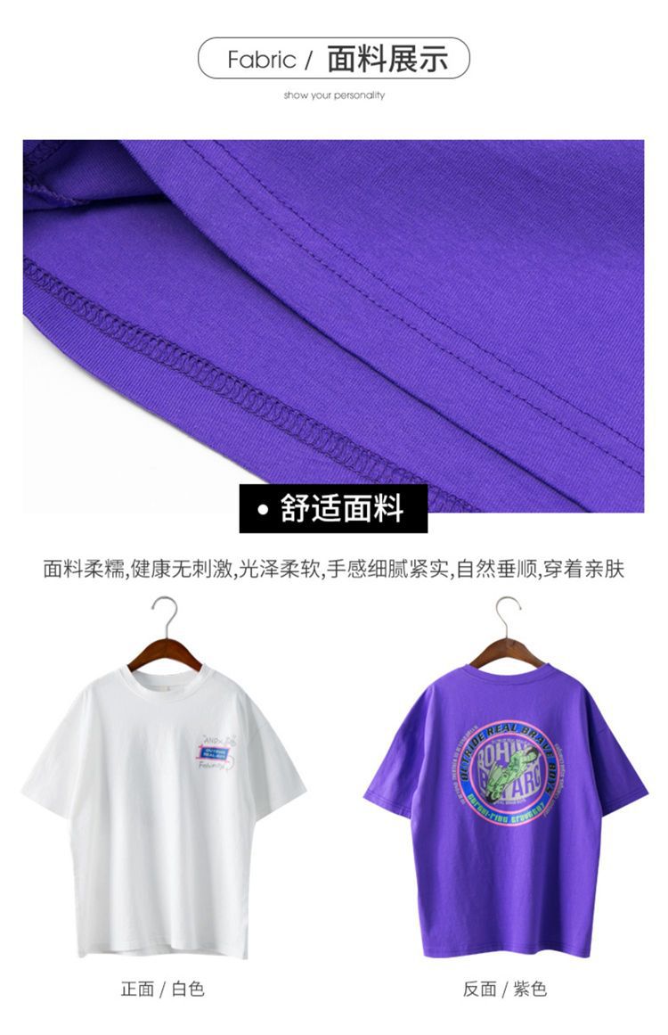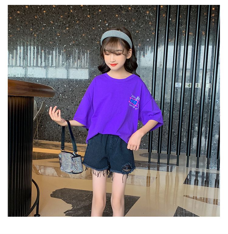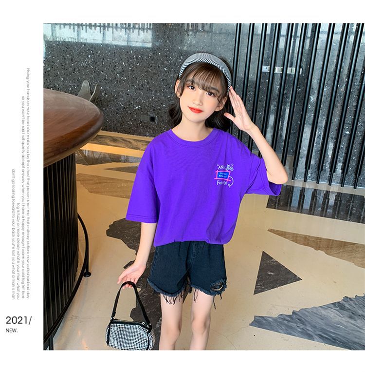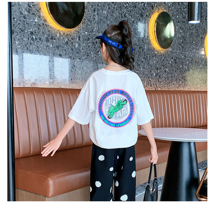 女童棉t恤衫夏中大童短袖上衣前后印花宽松儿童装打底衫