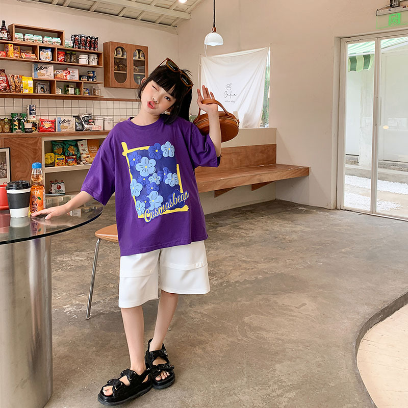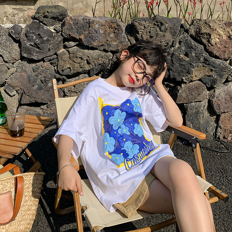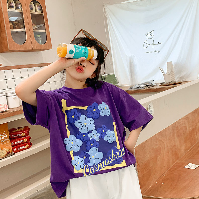 童装女童夏装短袖T恤新款宽松卡通印花儿童女孩夏季潮服大童帅气
